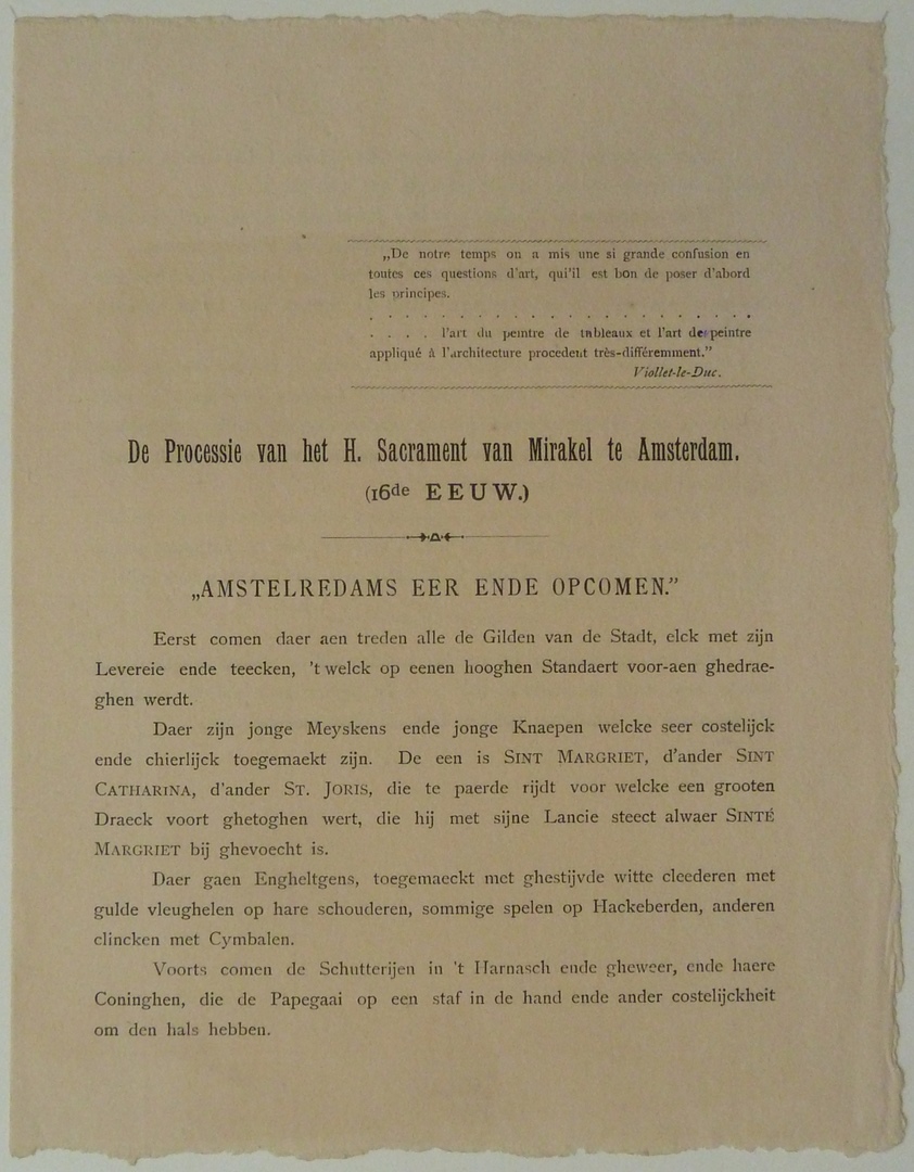 Mirakel van Amsterdam: knipsels en beschrijving van de processie zoals die geweest zou zijn