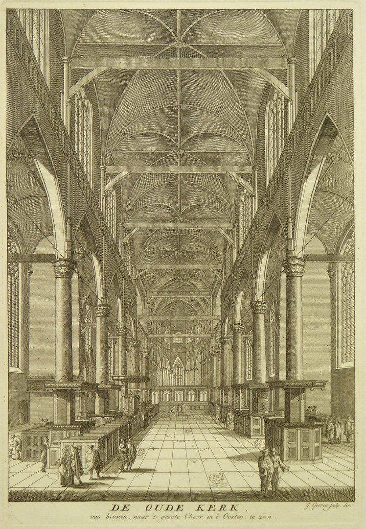 Amsterdam, Oude Kerk van binnen naar 't grote koor, in het oosten te zien