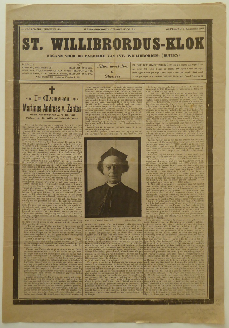 St. Willibrordus-klok met in memoriam Martinus Andreas van Zanten, pastoor van St. Willibrord