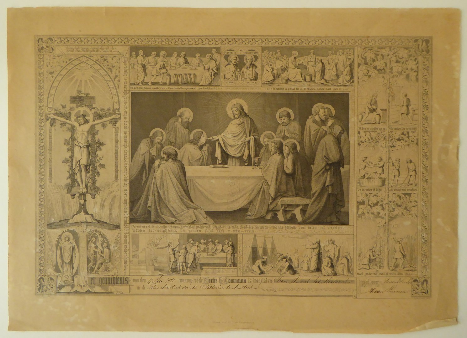 Gedachtenisprent t.g.v. eerste H. Communie in de parochiekerk H. Catharina, Amsterdam 1871