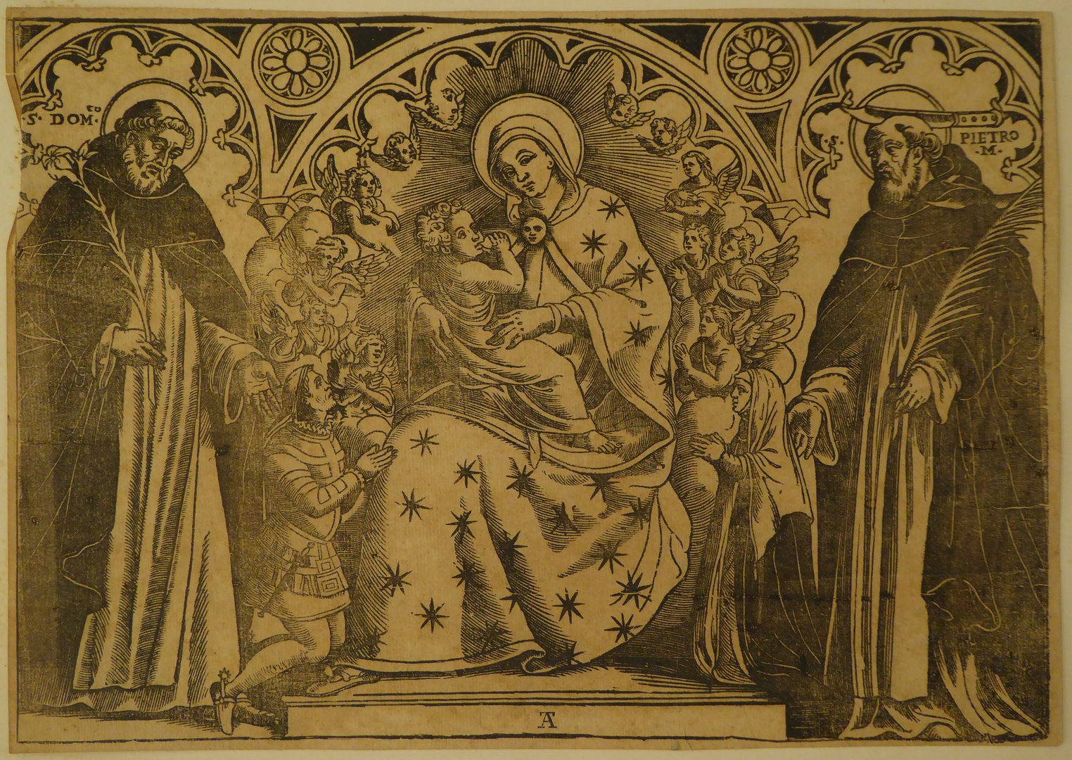 Tronende Maria met kind, temidden van engelen