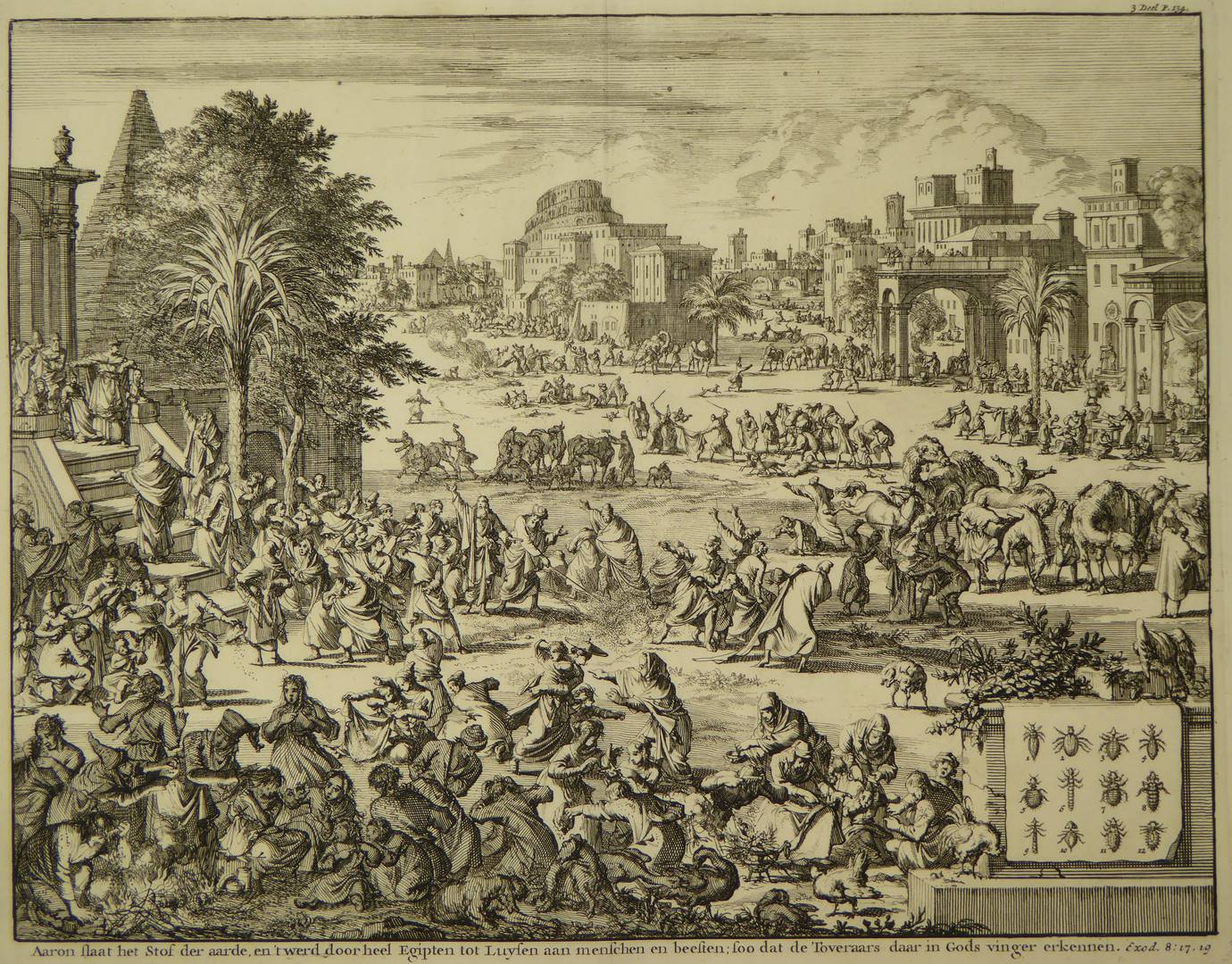Serie Mozaïsche Historie der Hebreeuwse Kerke...: Aaron slaat het stof der aarde tot luizen