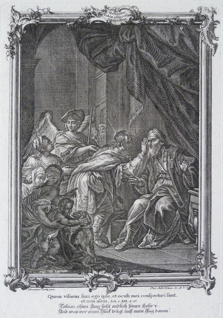 Prentbijbel O.T. en N.T. (Duits) (serie): Tobit aanschouwt Tobias (Tobit 11:13-15)