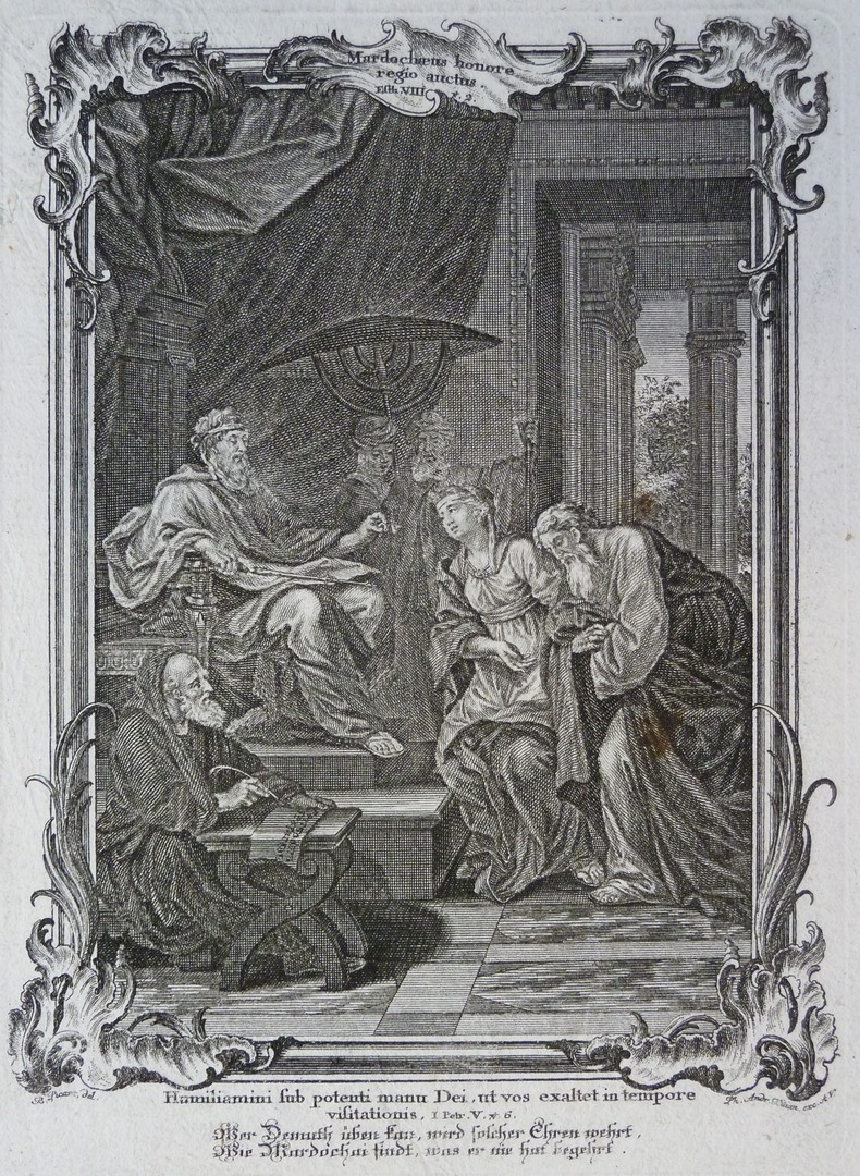 Prentbijbel O.T. en N.T. (Duits) (serie): Koning Ahasveros geeft ring van Haman aan Mordechai
