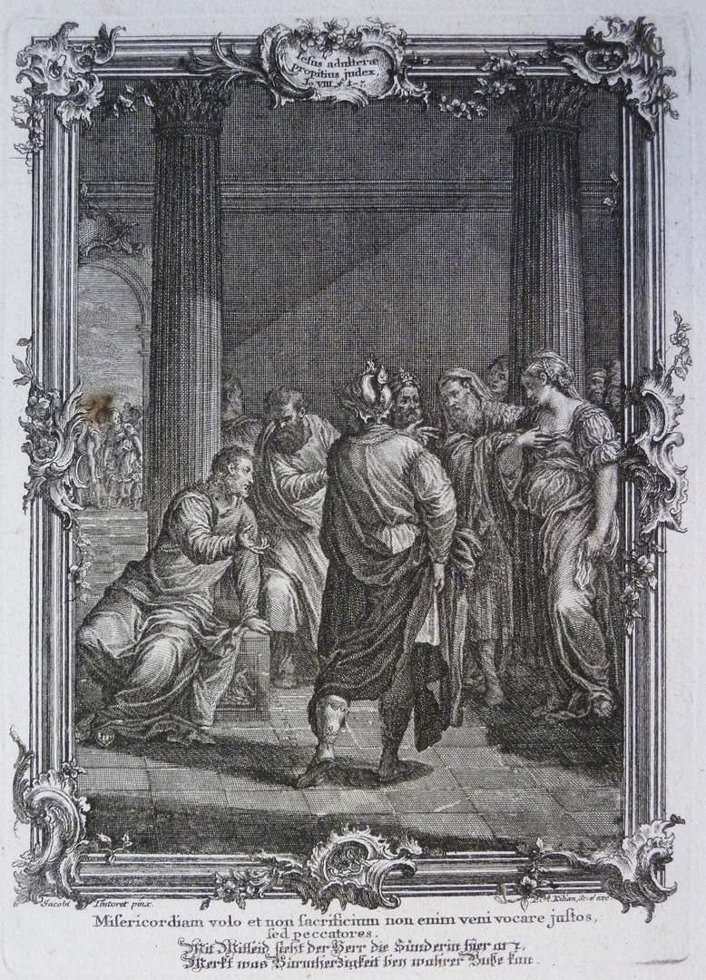 Prentbijbel O.T. en N.T. (Duits) (serie): Overspelige vrouw (Joh.8:1-7)