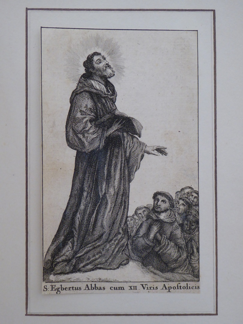 Album met 26 gravures uit Martelaars-boek ofte historie der Hollandse martelaren (en 8 gravures uit Het leven van de H. Thomas van Aquino): St. Egbertus Abbas