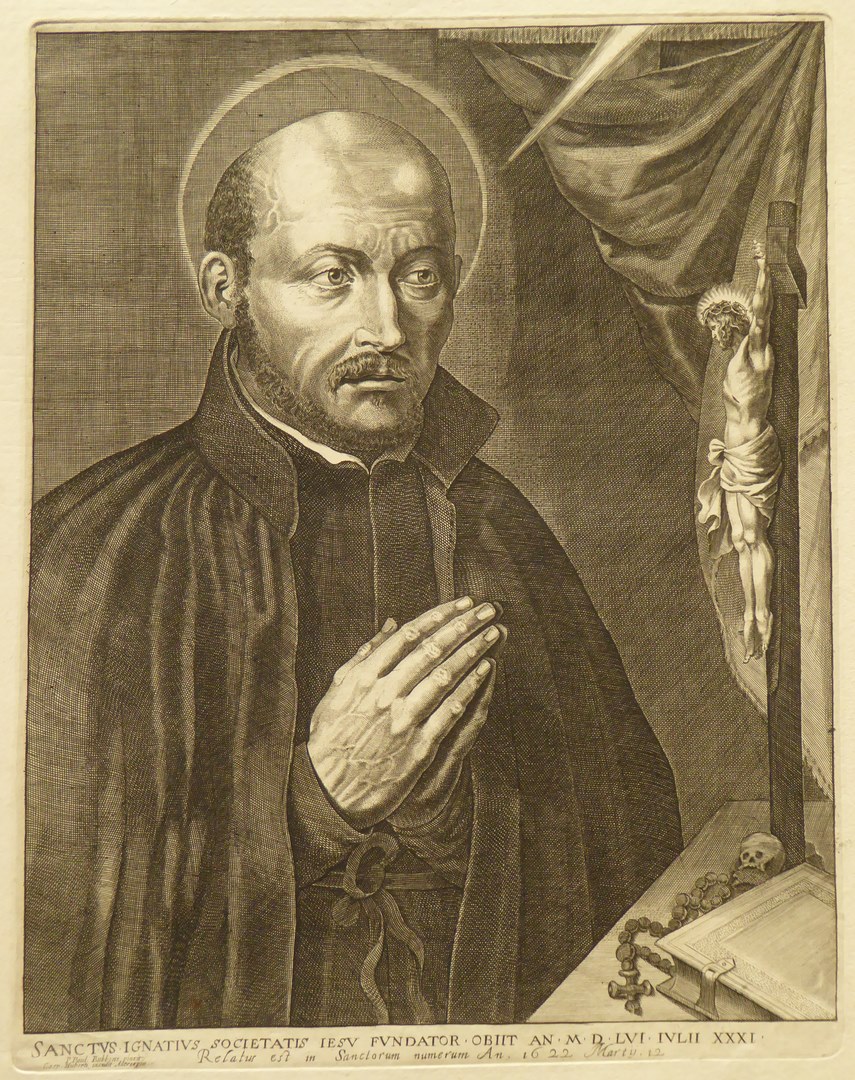 Ignatius van Loyola in gebed voor een kruisbeeld