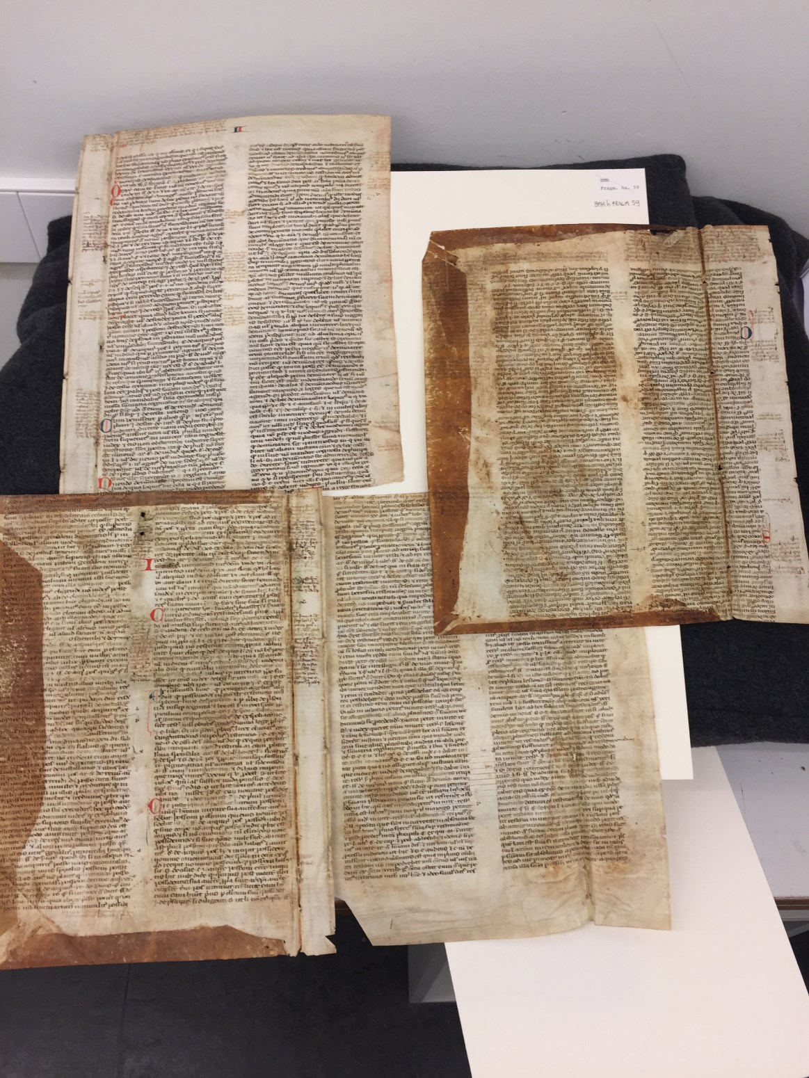 Fragmenten, 4 stuks, juridische teksten met commentaar in de marges