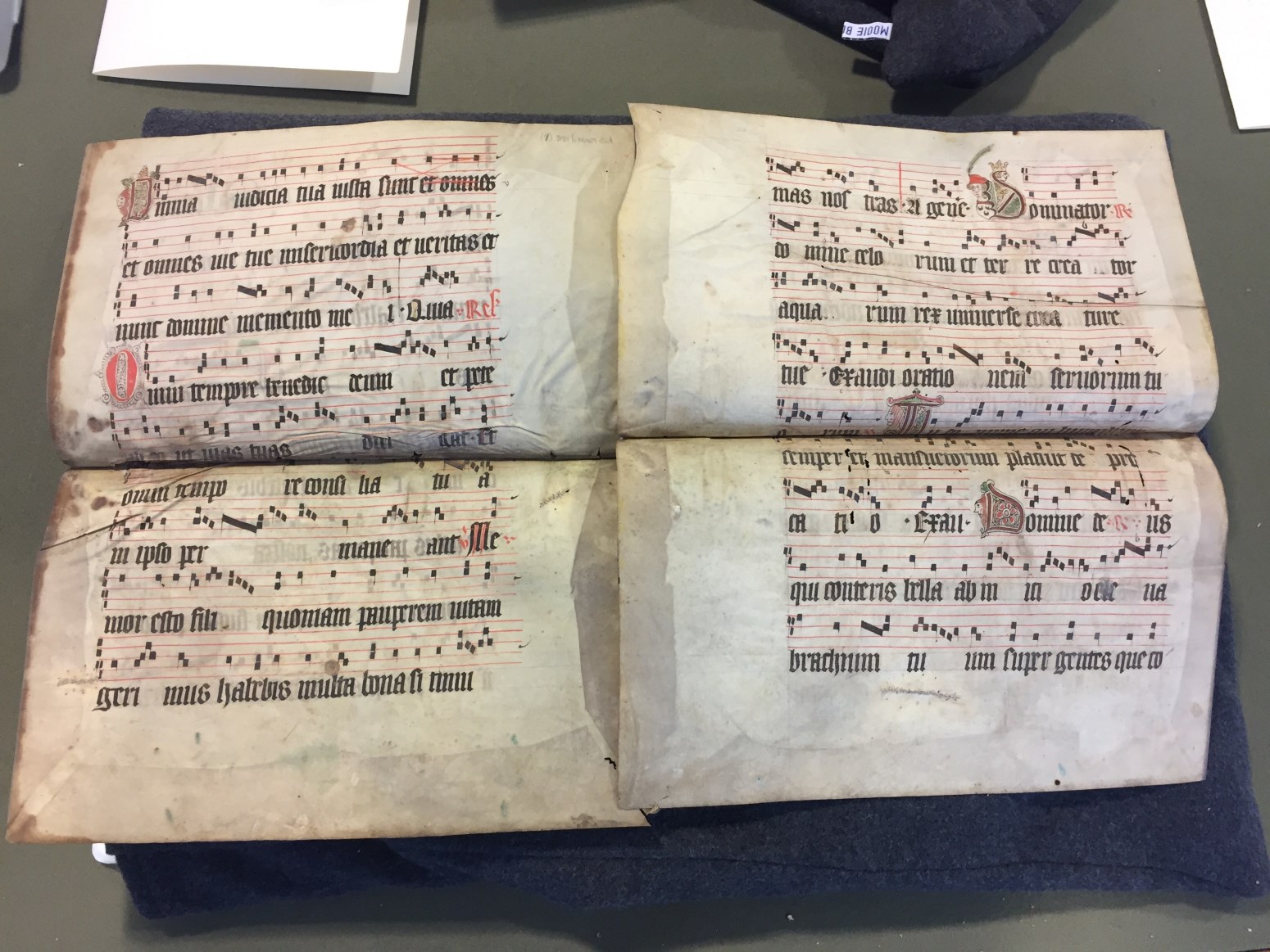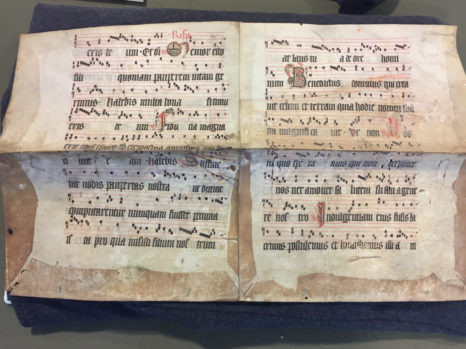 Fragment met tekst en muziek van Brevarium monasticum: Dominica IV Septembris 3de responsorie, 1ste nocturne 1ste responsorie van de 2de nocturn; 2 resp. van de 2de nocturn, begin van de 3de responsorie van de 2de nocturn.