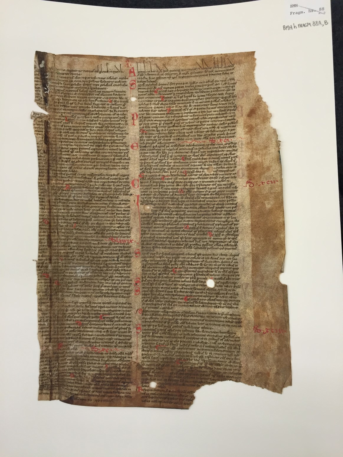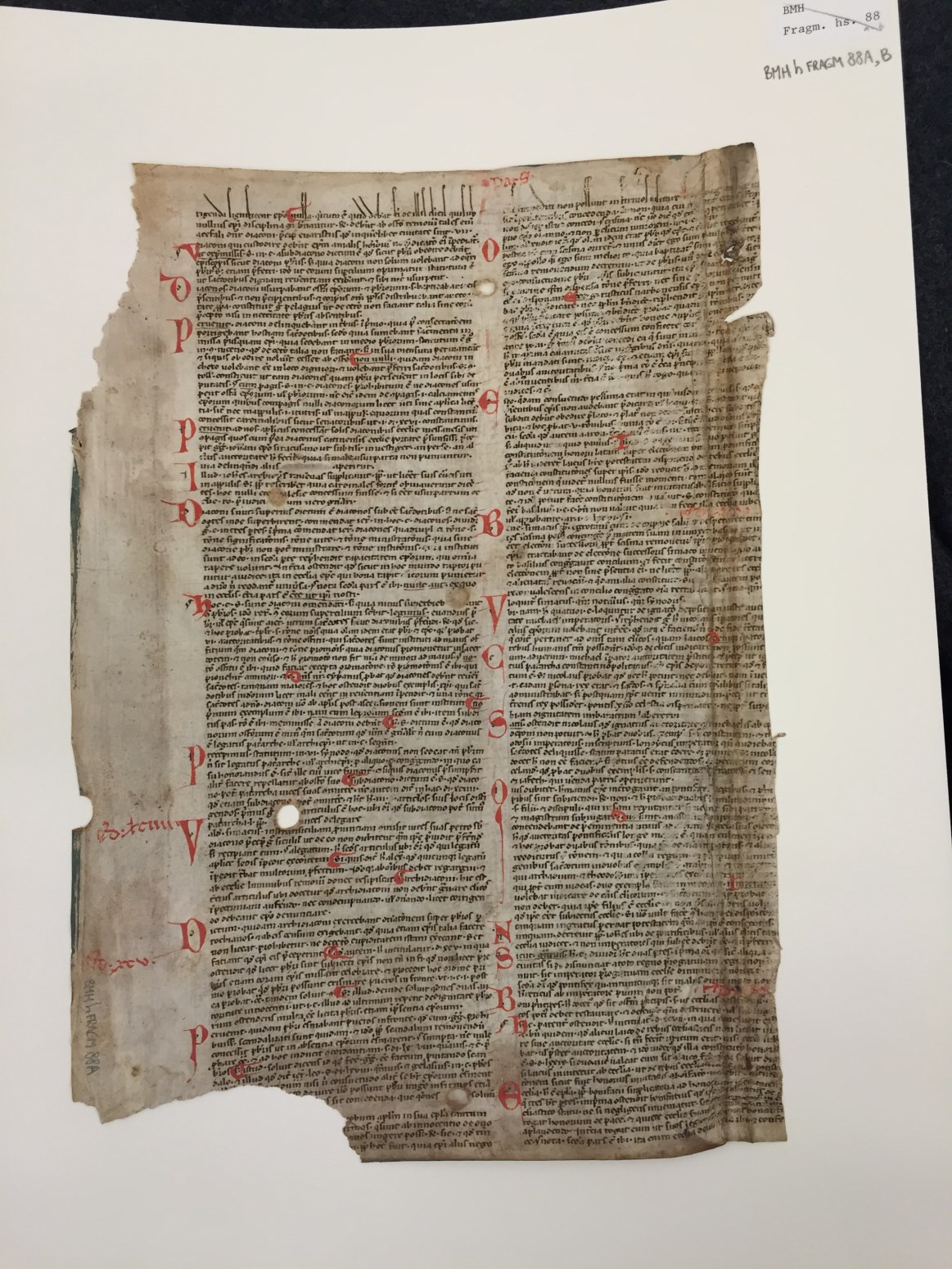 Dit commentaar op het Decretum van Gratianus dat rond 1140 werd samengesteld, stemt niet overeen met bekende commentaren en is nog niet geïdentificeerd. De korte samenvattingen van de casus (distinctio 88-97) op het eerste blad zijn niet bijzonder origineel. Het werk kan vrij precies gedateerd worden omdat de Compilatio prima, de eerste officïele decretalenverzameling van ...