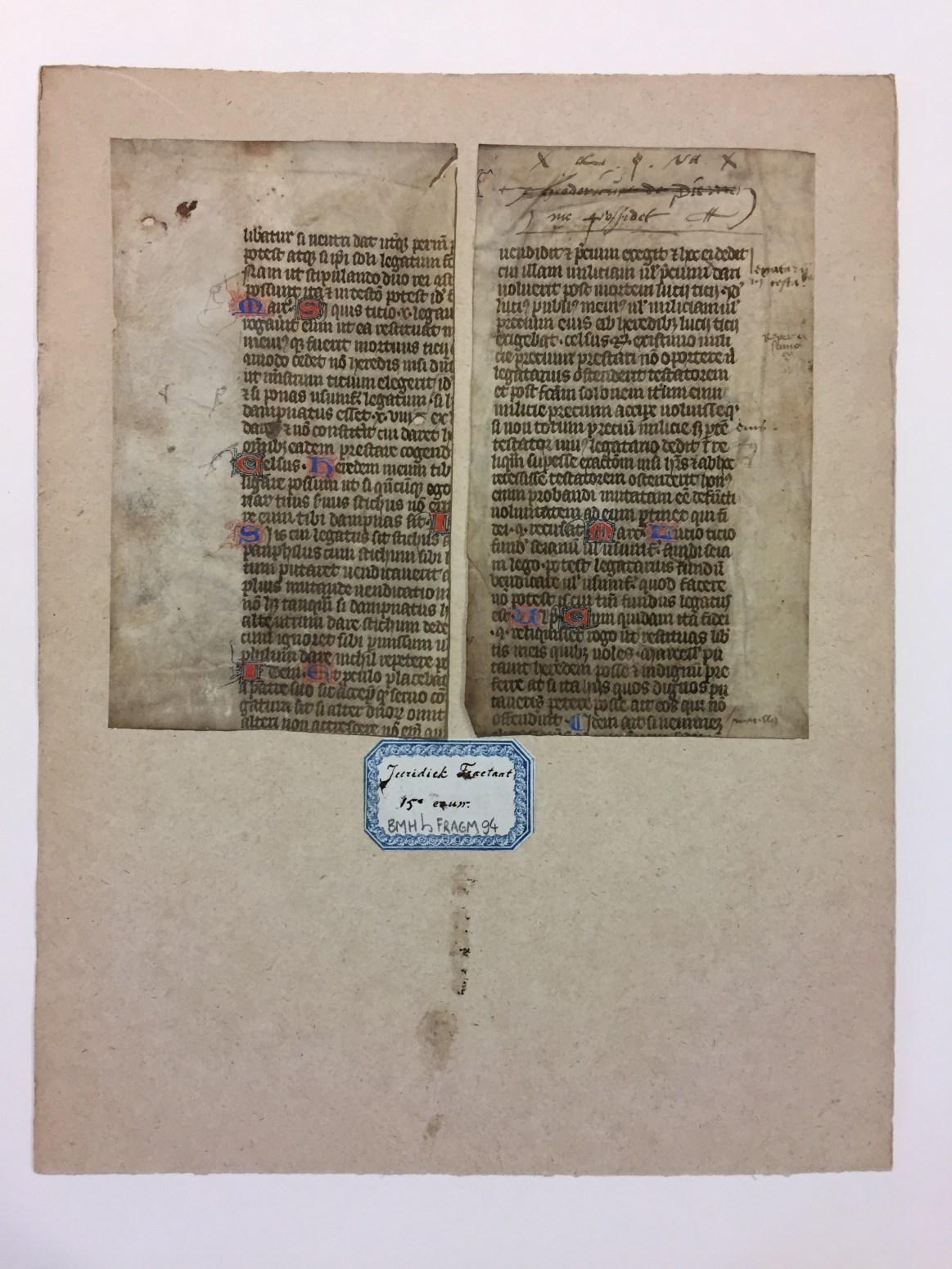 Fragment, twee stuks, juridisch tractaat (Romeins recht)