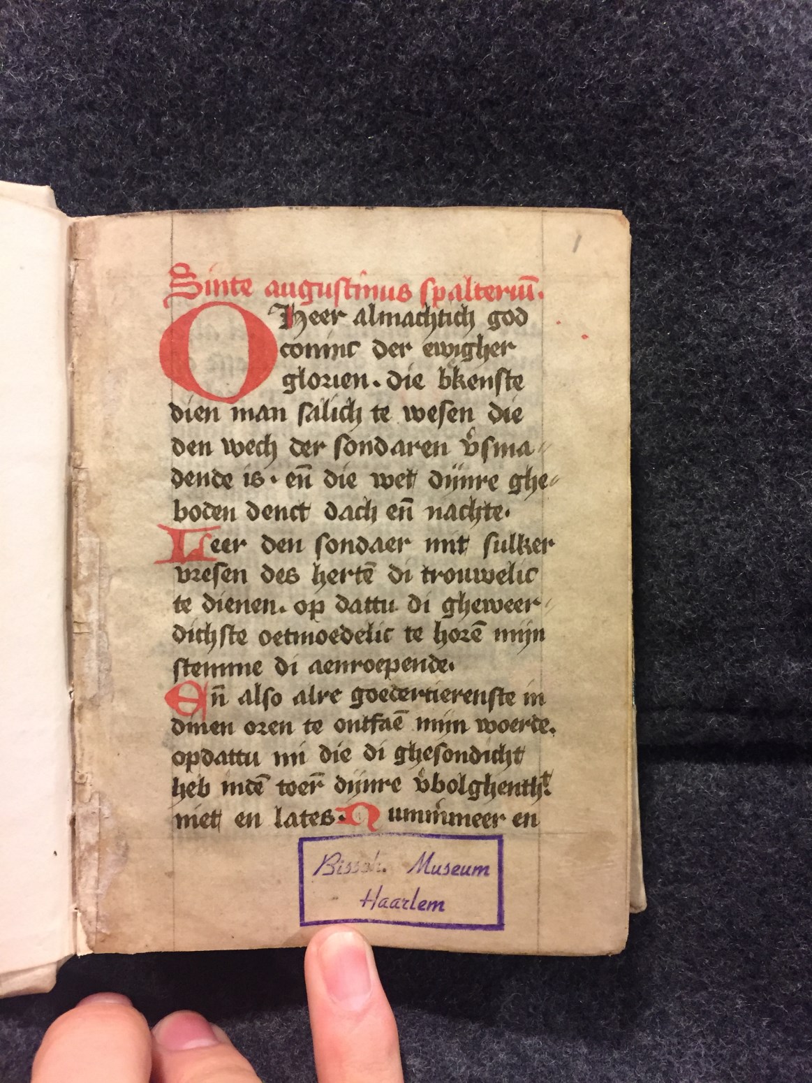 Het handschrift is opgedeeld in drie stukken: Sinte Augustinus s'palterium, Sequenties en een traktaat met instructies voor nonnen. Gumbert dateerde de eerste twee delen in de 15de eeuw, terwijl het laatste gedeelte (traktaat) waarschijnlijk uit het eerste kwart van de 15de eeuw komt. Het handschrift telt enkele eenvoudige initialen in rood en heeft één wat ...