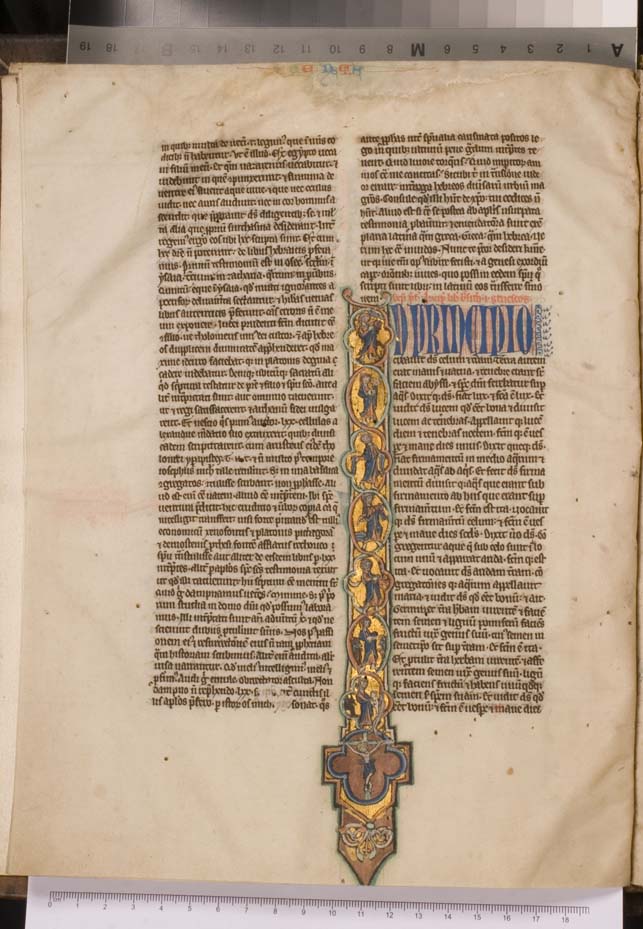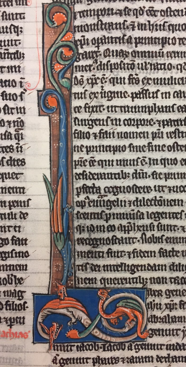 Een bijbel (op foliant formaat?) met het Oude en Nieuwe testament dat Gumbert dateerde in het midden van de 13de eeuw. Wüstenfeld was nauwkeuriger door het boek tussen 1280 en 1300 te plaatsen. Volgens een toevoeging op f. 1r was het handschrift van Radulfus Germeyn (Ralph Germeyn, aartsdiaken van Barnstaple in het bisdom van Exeter ...