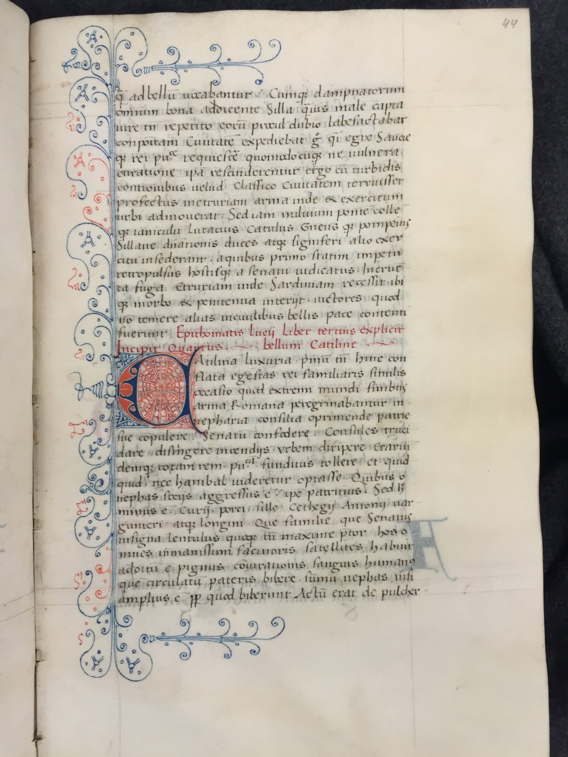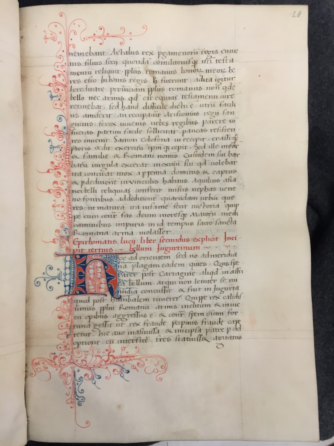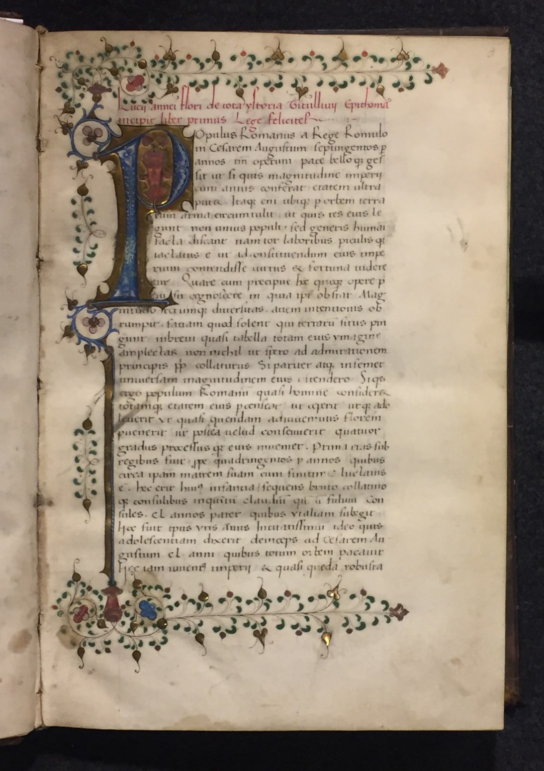 Dit handschrift met de teksten van Florus en Eutropius dateert uit d eerste helft van de 15de eeuw en is in humanistisch schrift geschreven. De decoraties in de marges zijn onmiskenbaar Delfts. De inhoudsopgave is in gotisch schrift geschreven en waarschijnlijk ook in Delft toegevoegd.