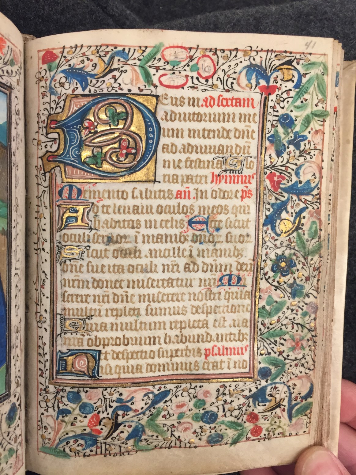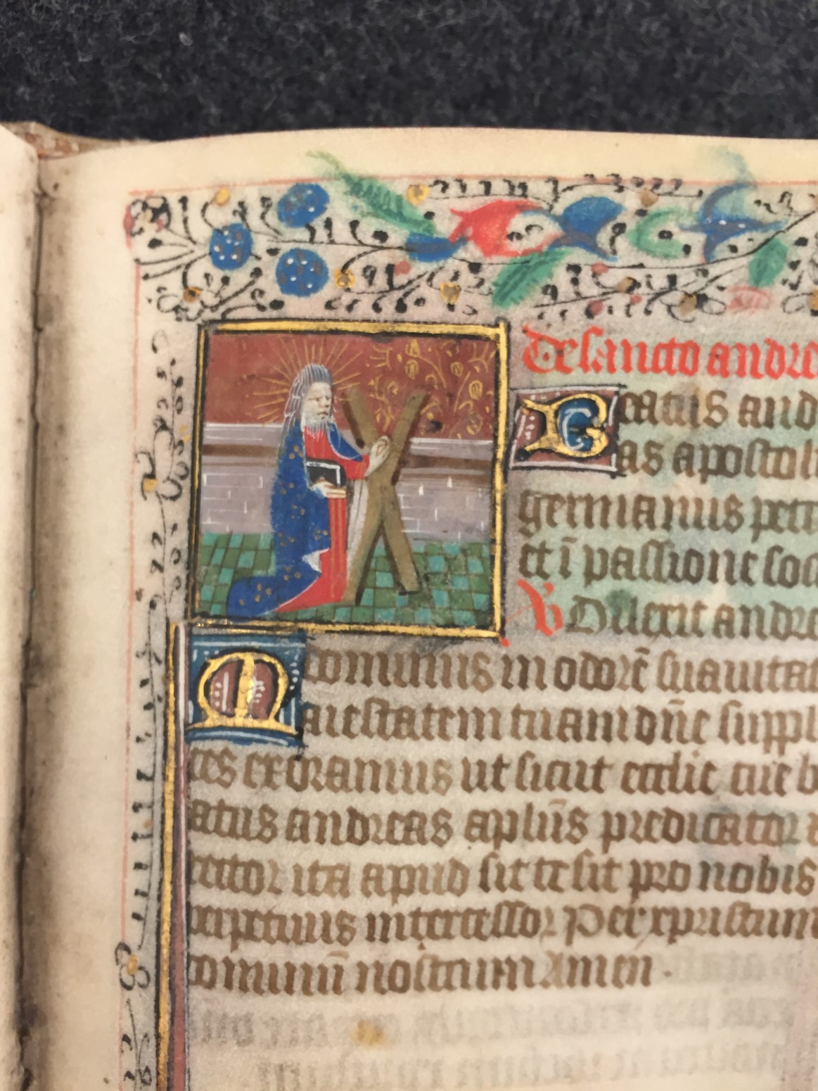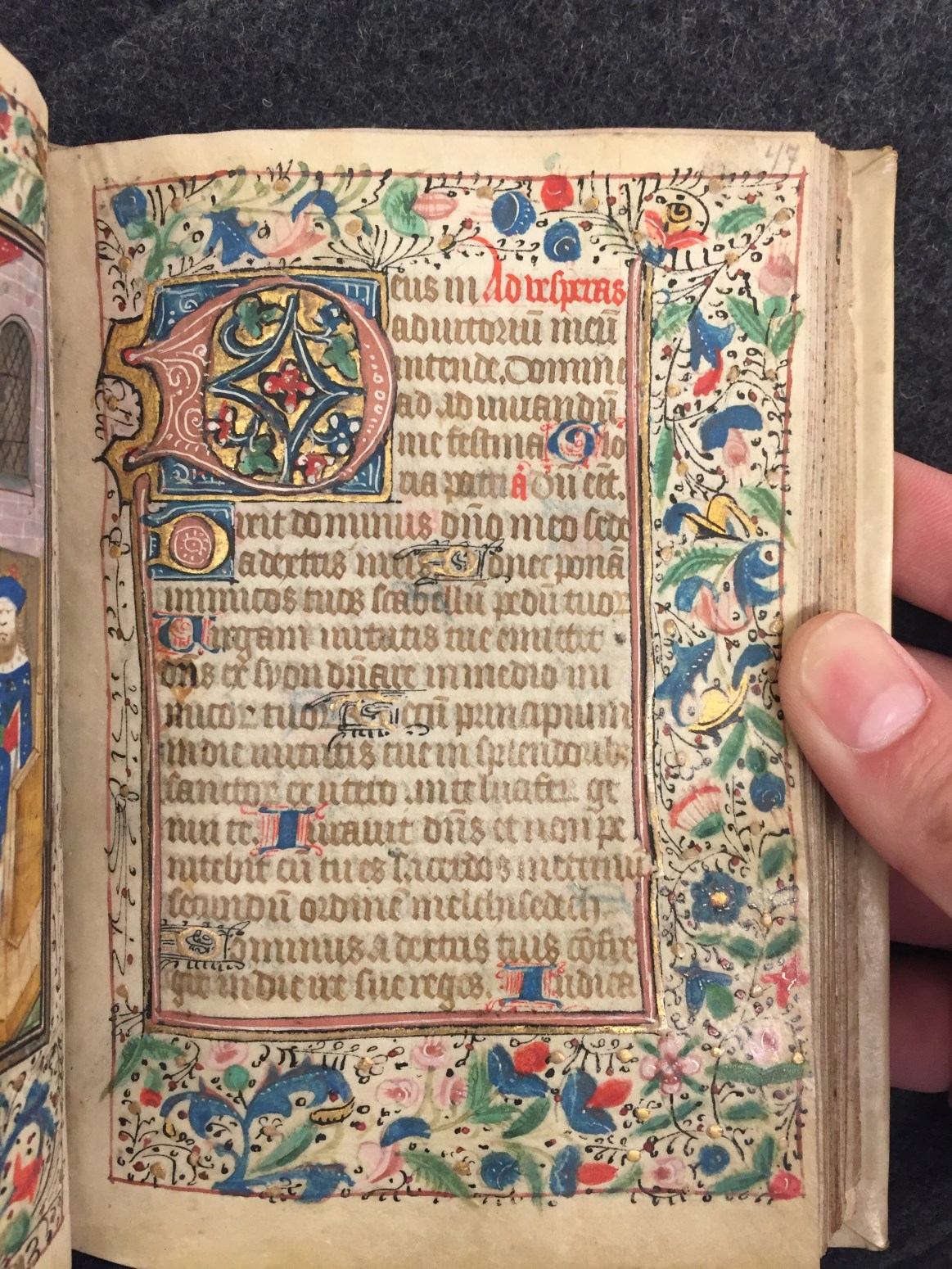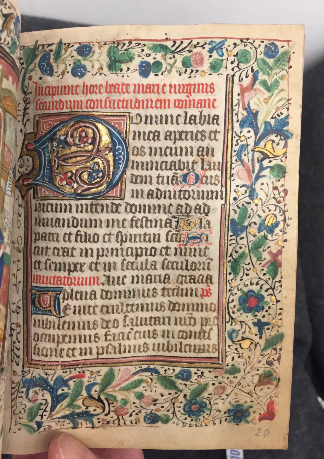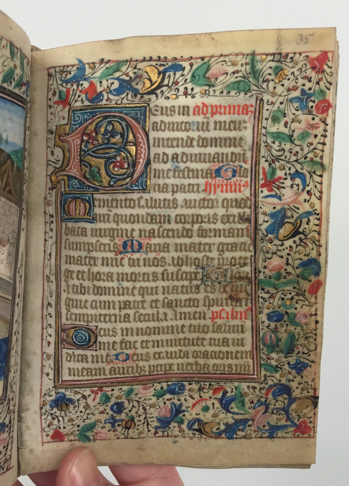 Een gebedenboekje uit de tweede helft van de 15de eeuw, waarschijnlijk afkomstig uit de Zuidelijke-Nederlanden (bisdom van Tournai). Naast elf bladgrote miniaturen, bevat het handschrift nog acht kleinere miniaturen (heiligen). Het handschrift telt in toaal 80 folia en heeft fraaie initialen in blauw en goud.