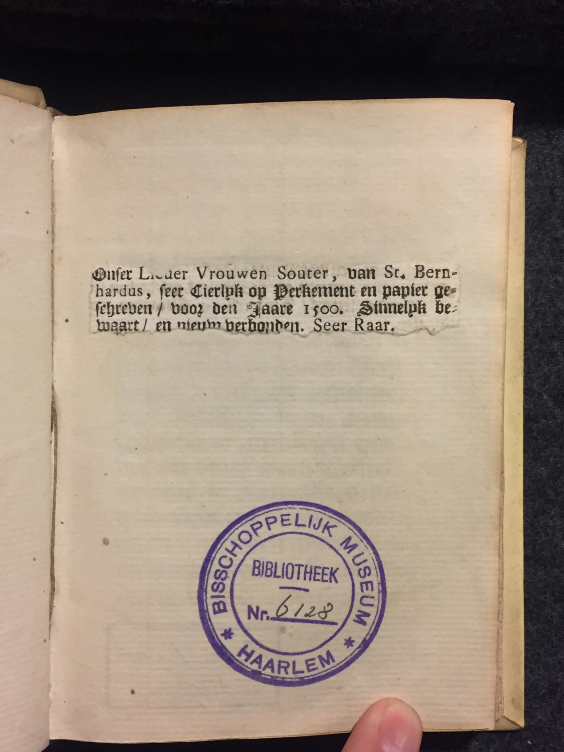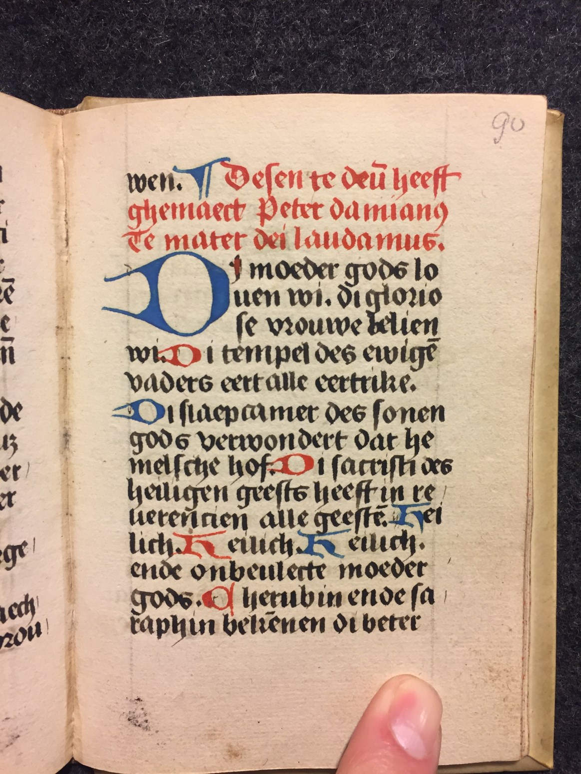 Een klein handschrift (octavo formaat) met het Onser Liever Vrouwen Souter geschreven rond 1500 in de (Zuidelijke-)Nederlanden. Het 100 folia tellende handschrift is summier gedecoreerd versierd. Alleen de eerste pagina is rijkelijk geïllustreerd, in de Gent-Brugse stijl.