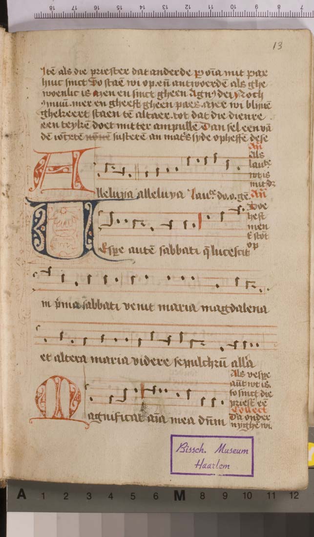 Een Antiphonarium uit de eerste helft van de 16de eeuw dat waarschijnlijk afkomstig is uit het Lopsen klooster (officiële naam: Sint Hieronymus-Dal) van de zusters Augustinessen te Leiden. Het handschrift (quarto formaat) heeft een hoefnagel muzieknotatie en enkele grove penwerkinitialen. Een latere eigenaar was de organist Willem Cnoop (1619). De schutbladen (perkament) komen uit het ...