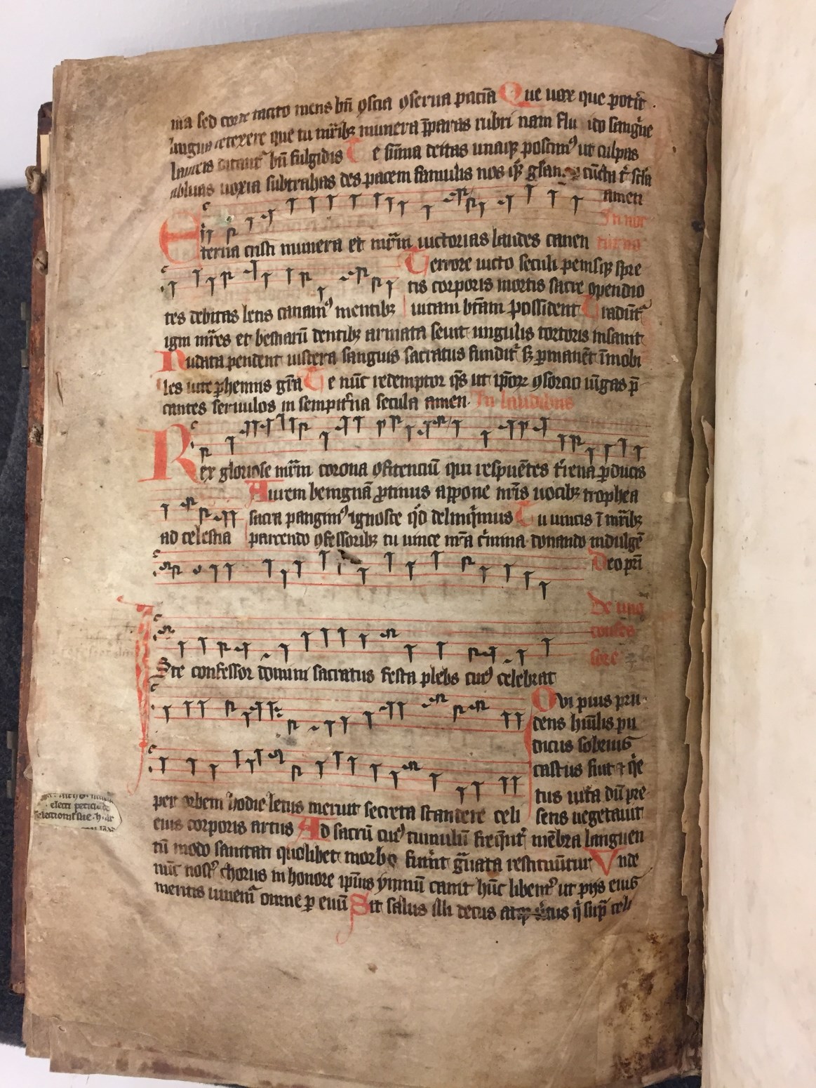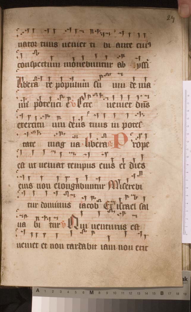 Een antiphonarium (wintergedeelte) uit de Zuidelijke-Nederlanden dat door Gumbert in de 14de eeuw werd gedateerd. Het handschrift telt 195 folia, heeft enkele interessante initialen en heeft een schutblad (dubbelblad) uit de 13de eeuw (Frankrijk?).