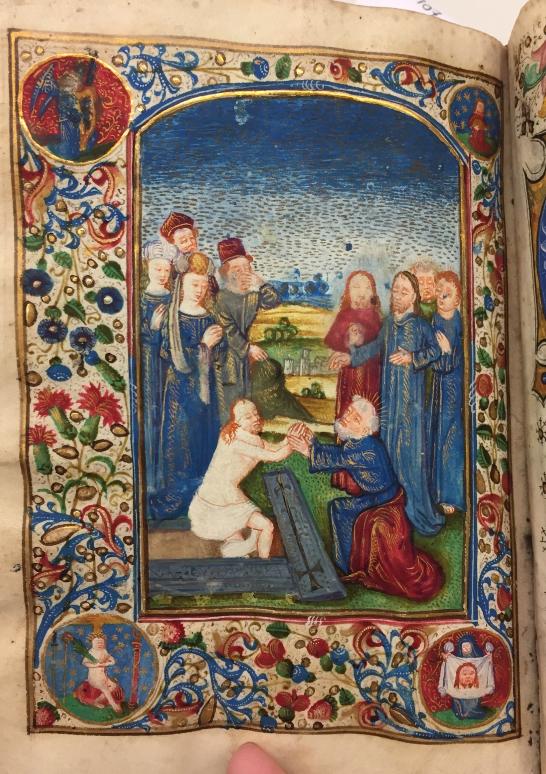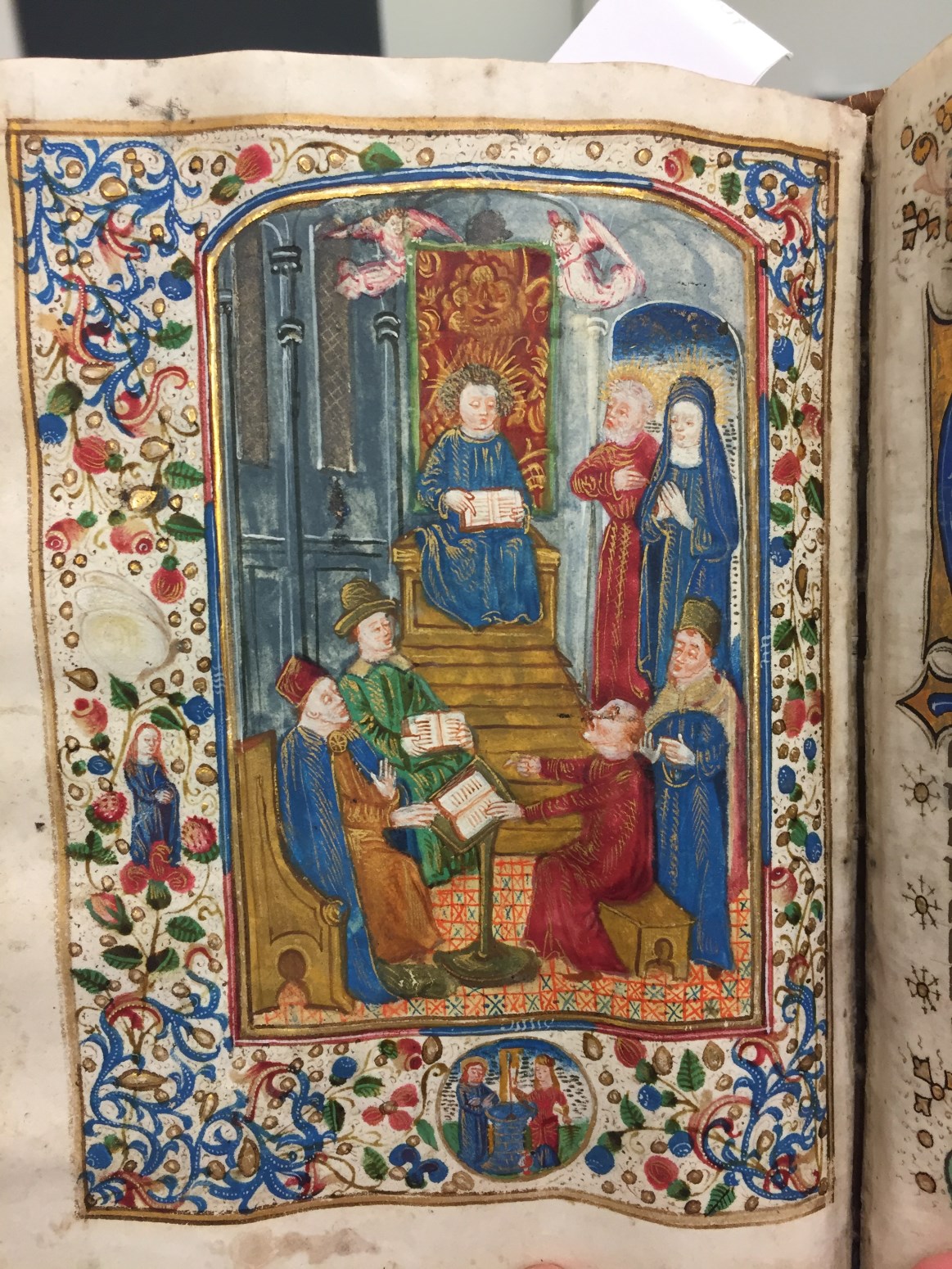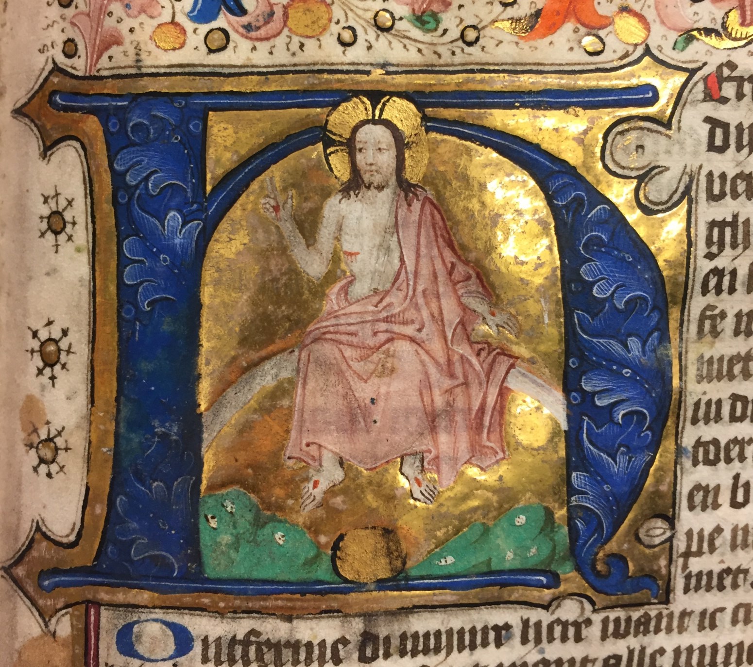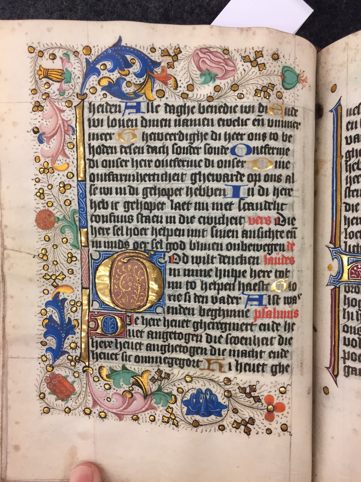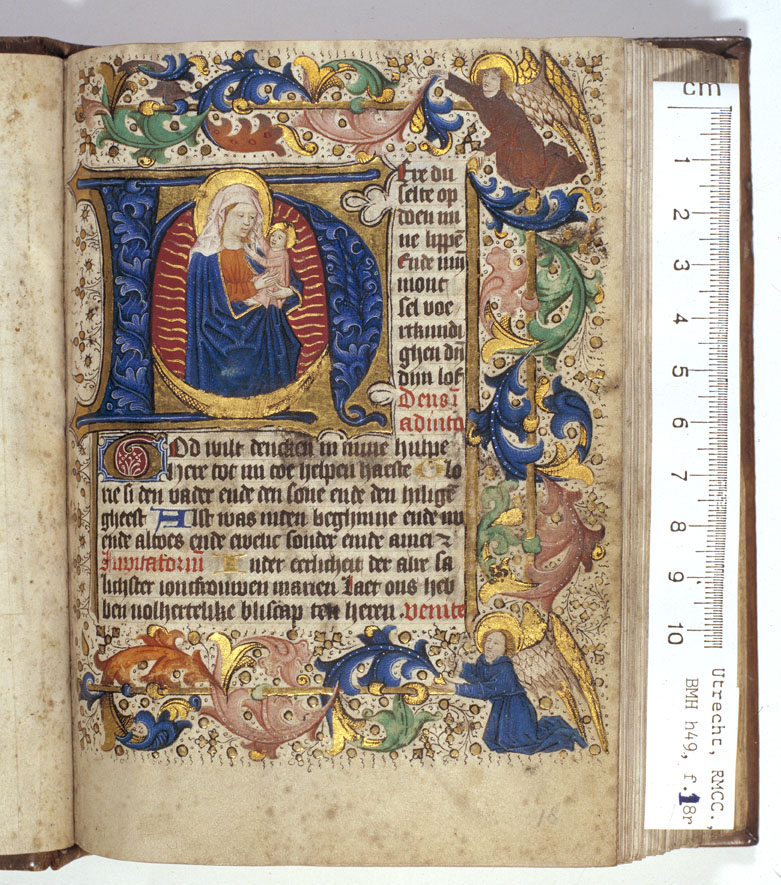 Vrijwel alle bladzijden van dit handschrift bevatten decoraties, waarbij de openingsbladzijde met in de initiaal Maria met kind bijzonder opvalt. De gave tekening, kleuren en het heldere goud zijn in goede staat bewaard. Daarnaast bevat het handschrift drie miniaturen van een der Meesters van Hugo Jansz van Woerden, die ook hier hun grote voorkeur voor ...