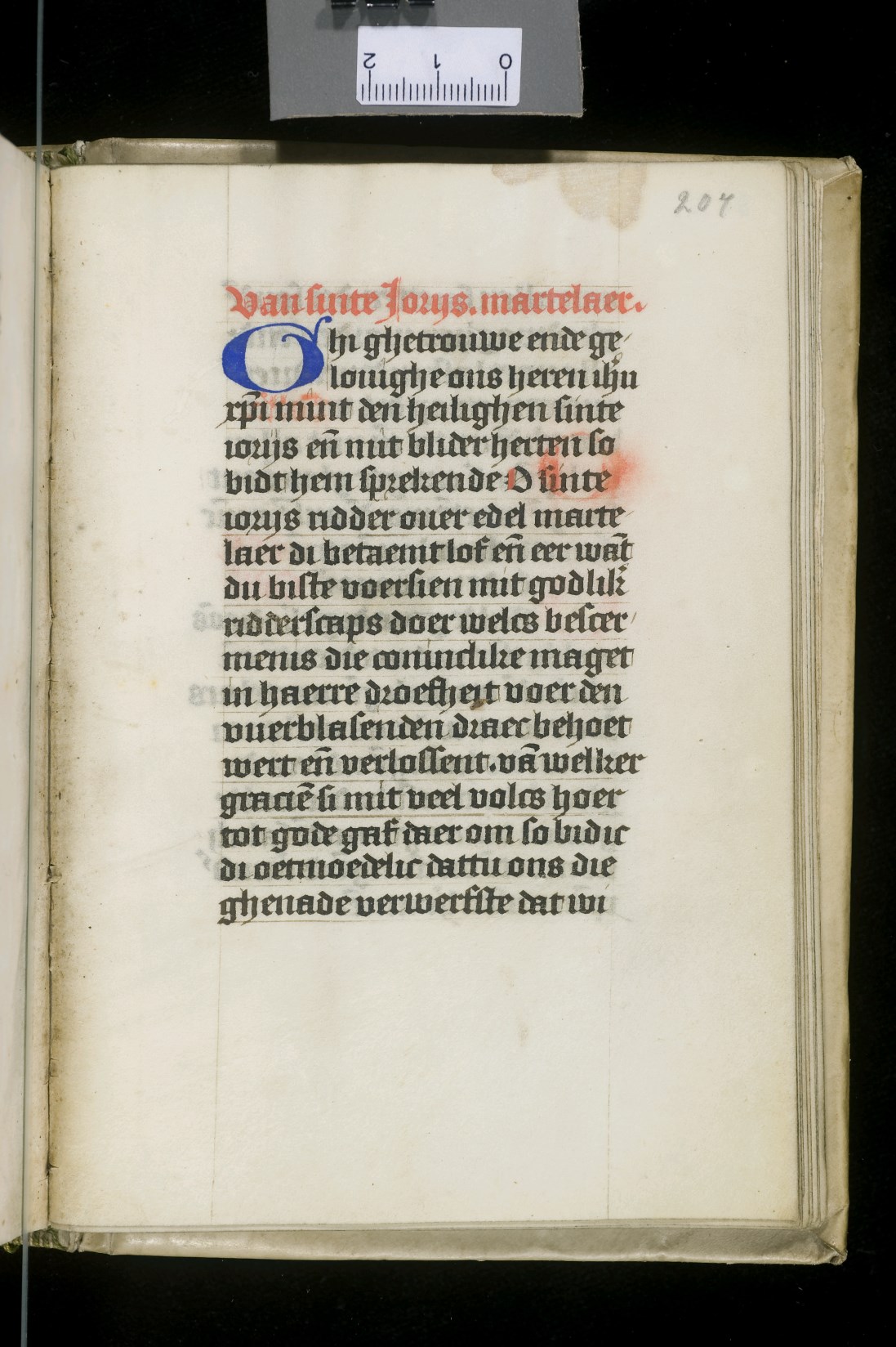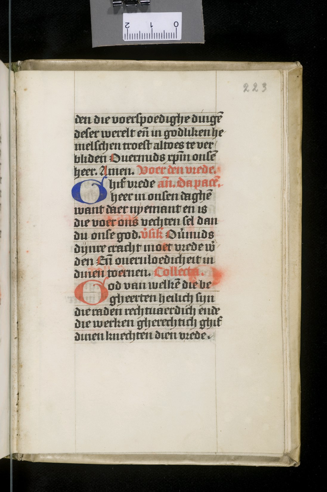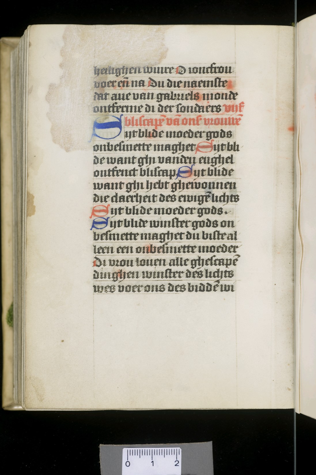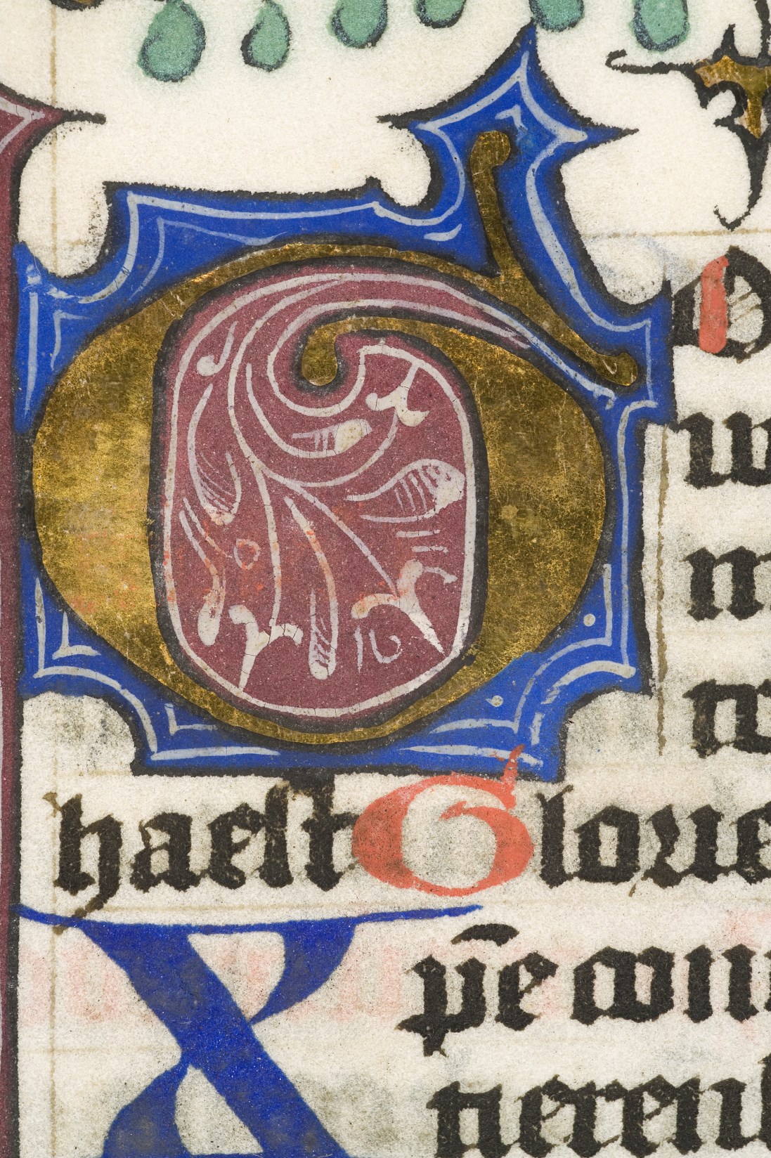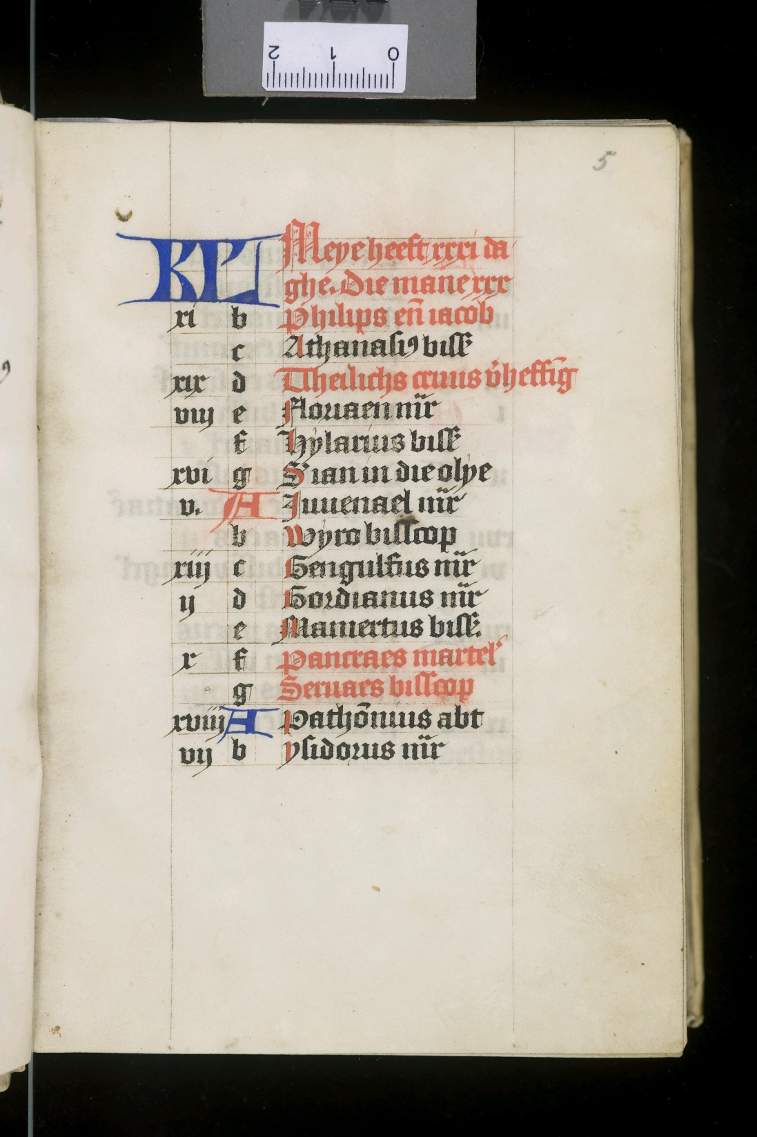 Dat het handschrift waarschijnlijk in Holland geschreven is, kunnen we afleiden uit het feit dat Jeroen in de kalender in rood vermeld staat. Opmerkelijk is echter dat de randversiering afkomstig is van een der zogenaamde Meesters van de Bostonse `Stad Gods', actief in Utrecht in de jaren 1460-1470. De kleurrijke versiering rond staaflijsten van inktlijnen ...