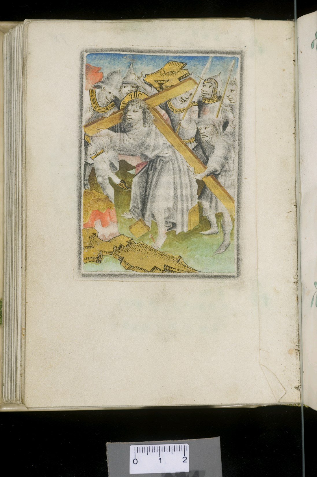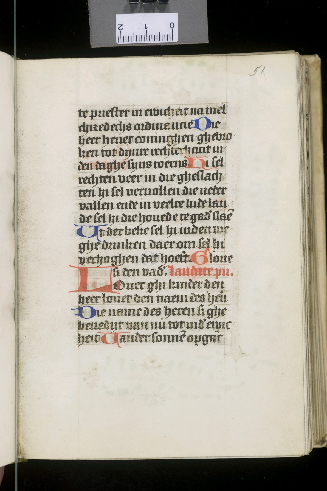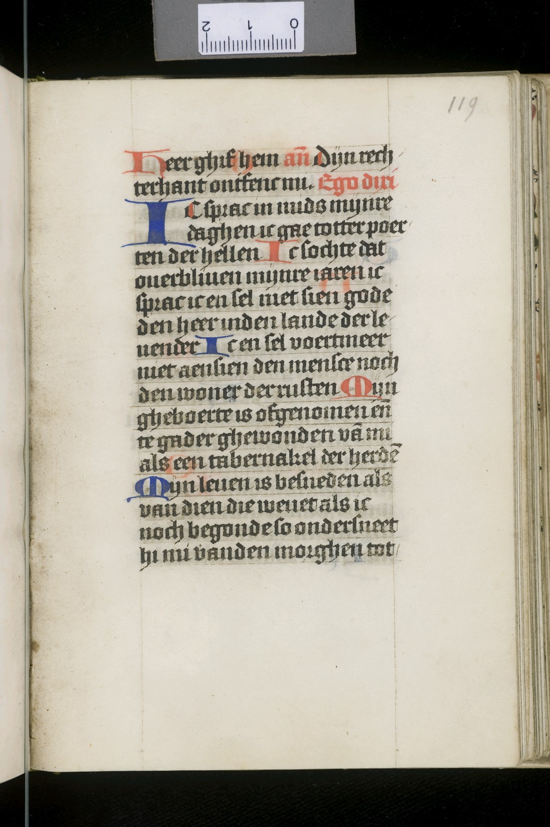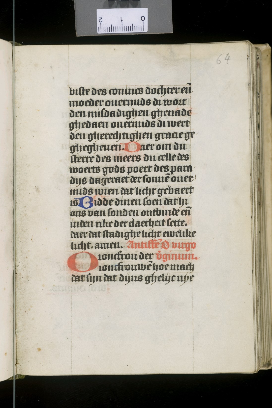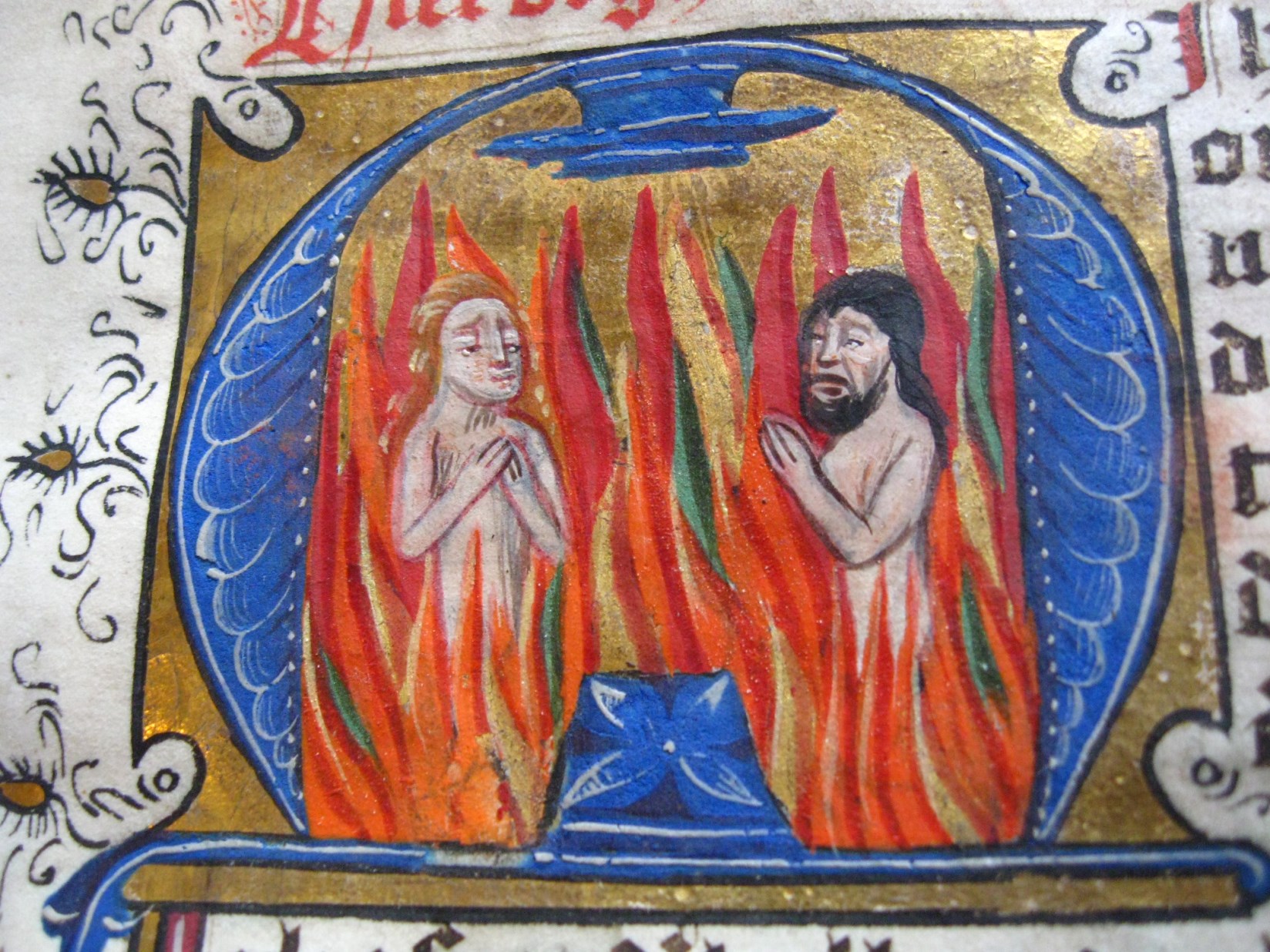 Dat het handschrift waarschijnlijk in Holland geschreven is, kunnen we afleiden uit het feit dat Jeroen in de kalender in rood vermeld staat. Opmerkelijk is echter dat de randversiering afkomstig is van een der zogenaamde Meesters van de Bostonse `Stad Gods', actief in Utrecht in de jaren 1460-1470. De kleurrijke versiering rond staaflijsten van inktlijnen ...