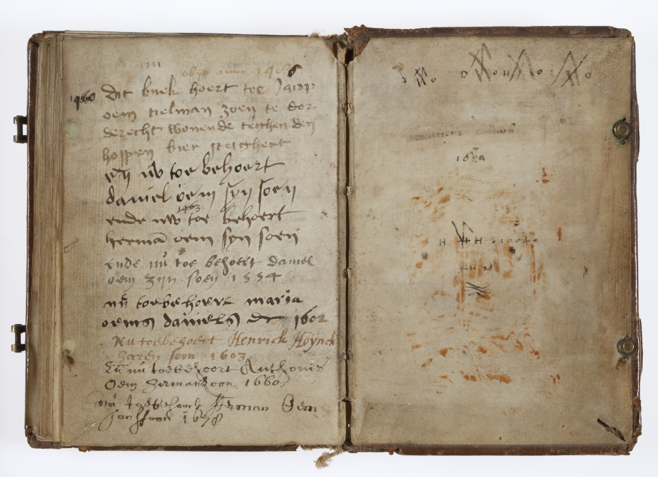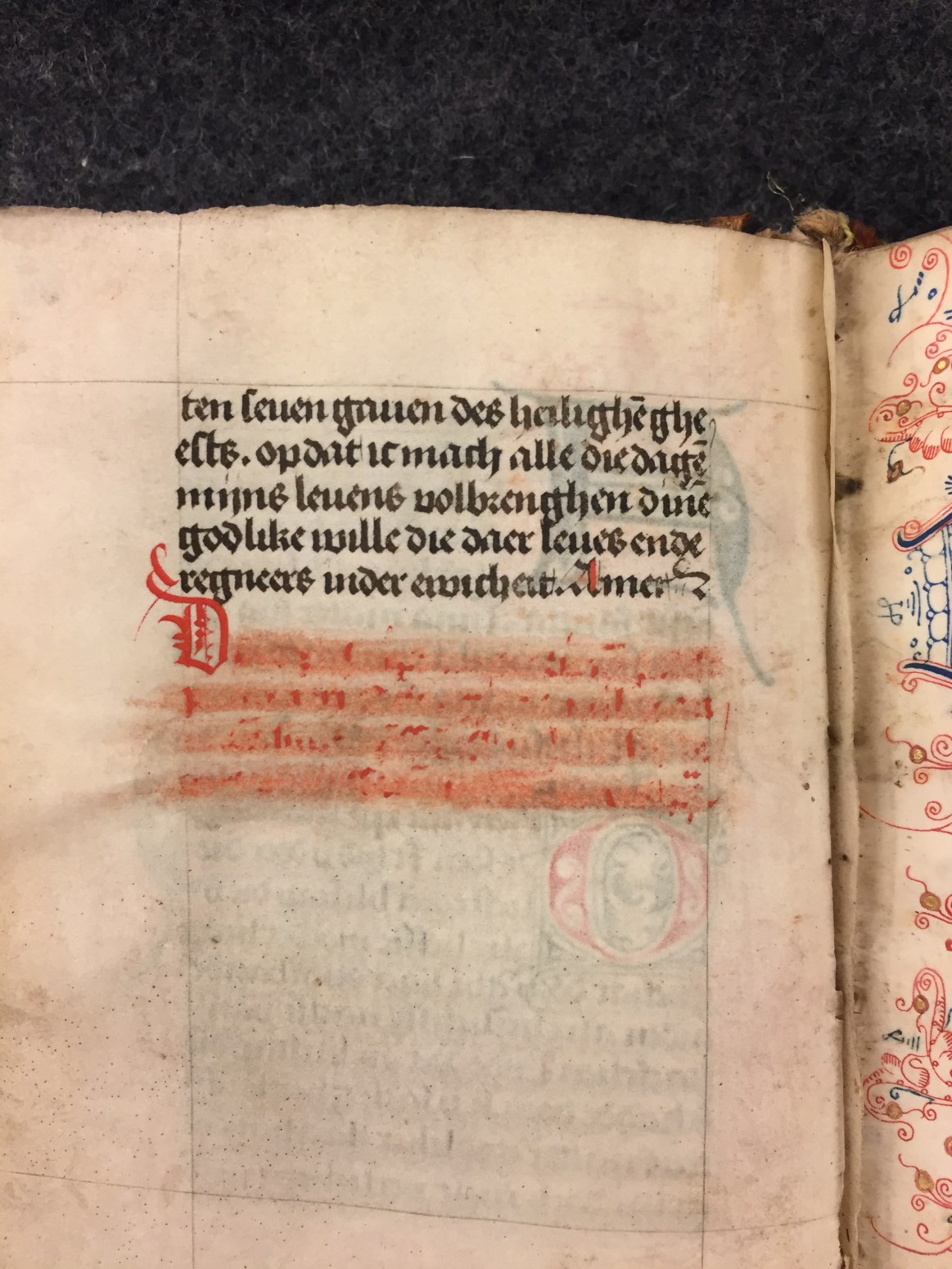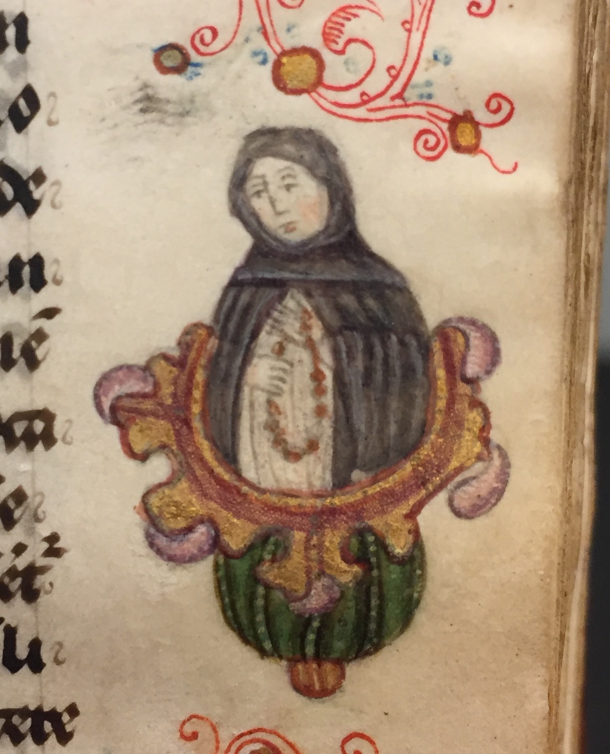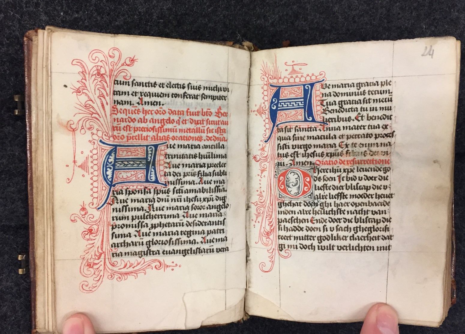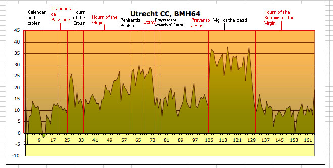 Het jaar van vervaardiging van het handschrift, 1456, staat twee keer in het boekje vermeld, op f. 4v (later toegevoegd) en f. 17r. De Utrechtse kalender bevat geen bijzondere vermeldingen en zelfs Jeroen, zo kenmerkend voor Holland, ontbreekt. Toch is het boekje vermoedelijk wel in Delft ontstaan, hetgeen afgeleid kan worden uit de randversiering die ...