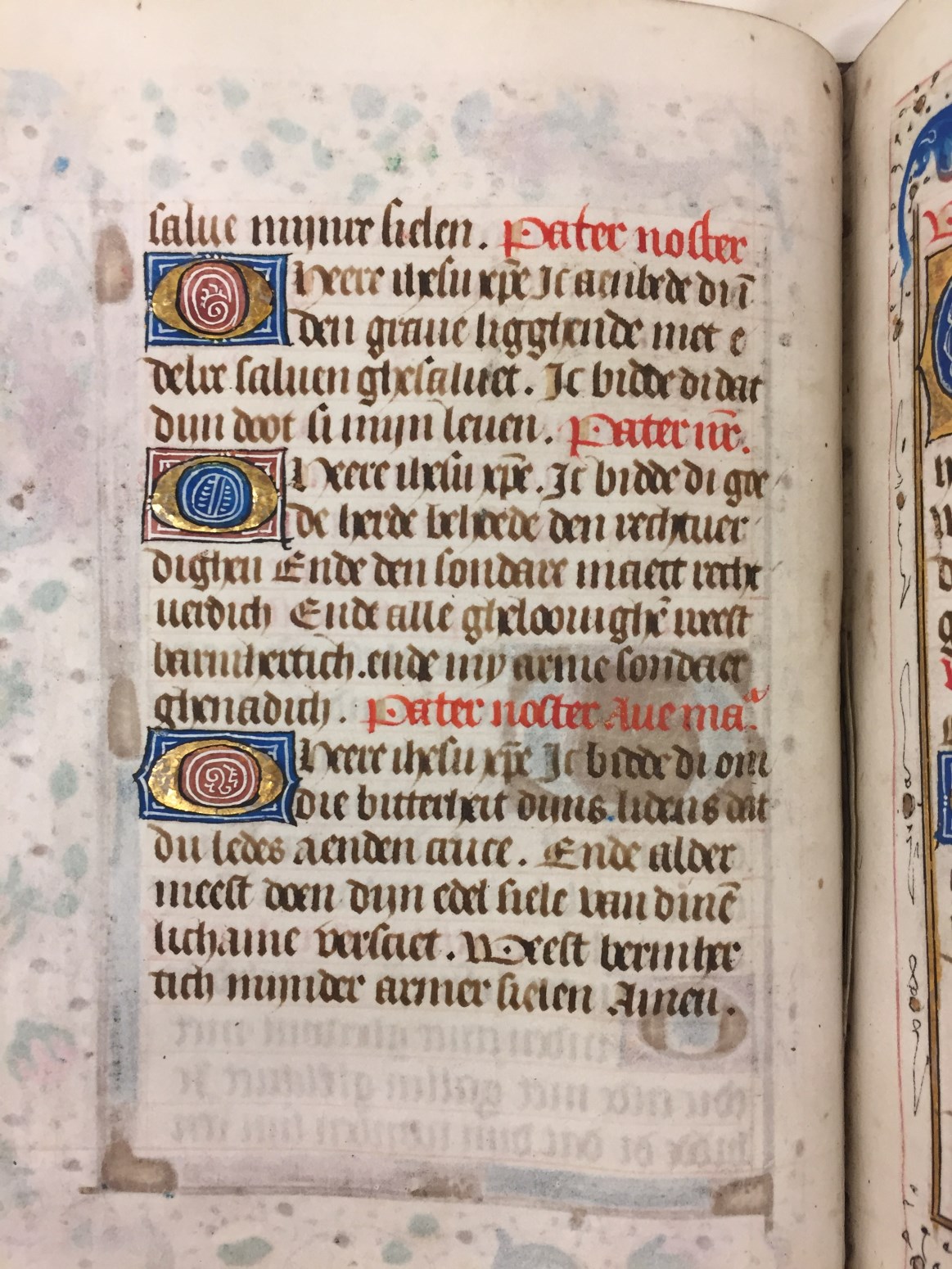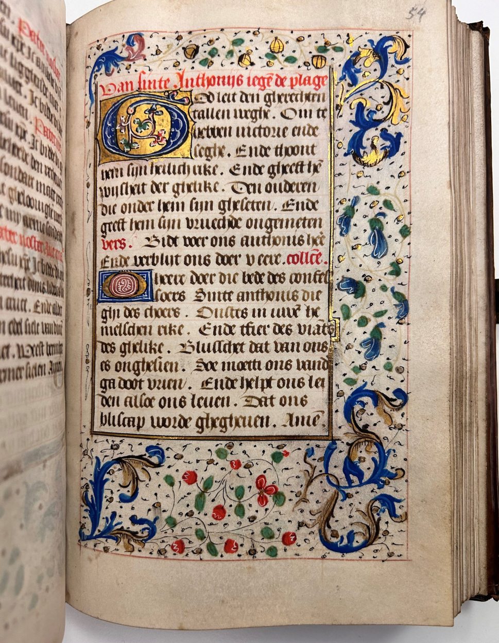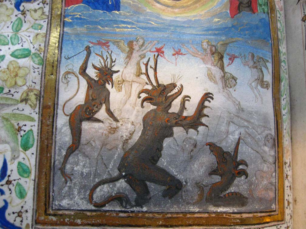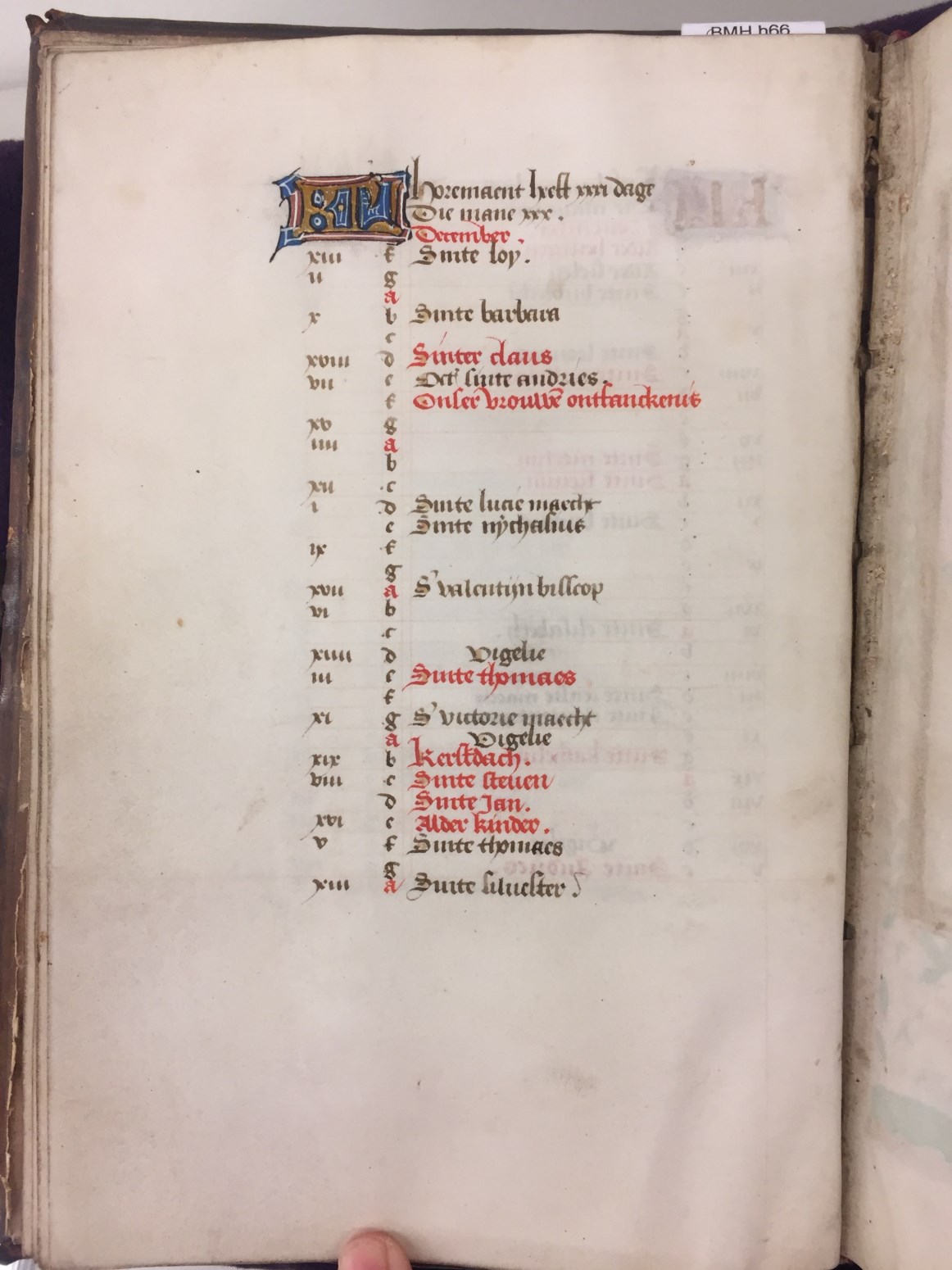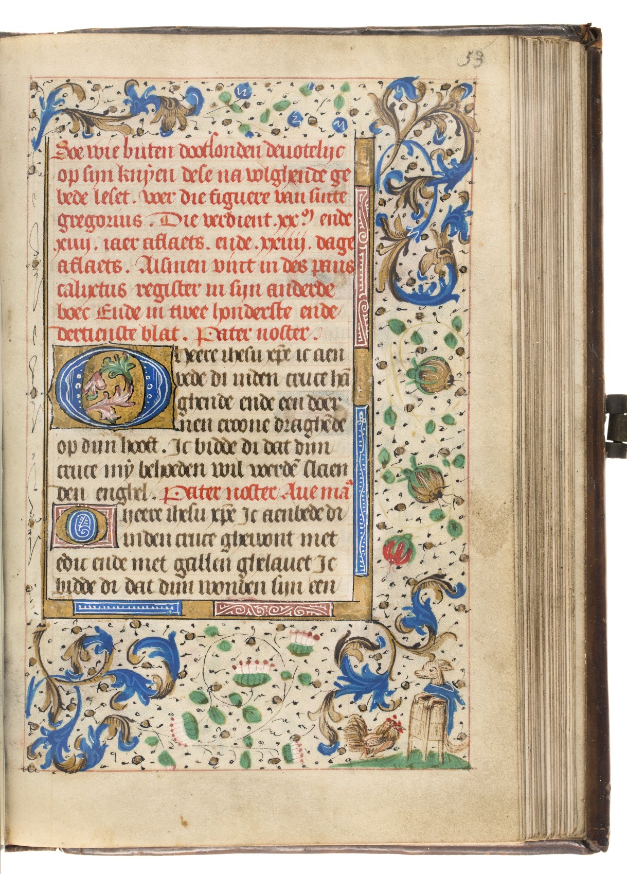 In het handschrift zijn twee miniaturen bewaard, een annunciatie naar voorbeeld van Hans Memlinc (f. 8v, behoorlijk beschadigd) en een bijzondere afbeelding van het laatste oordeel bij het begin van de zeven boetpsalmen (f. 37v). Tenminste twee miniaturen zijn uitgesneden, een voor de korte Kruisgetijden (f. 48) en vermoedelijk ook een bij de suffragie voor ...