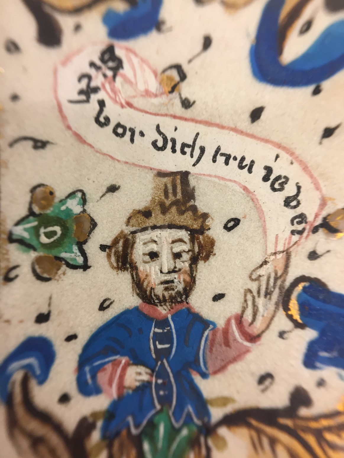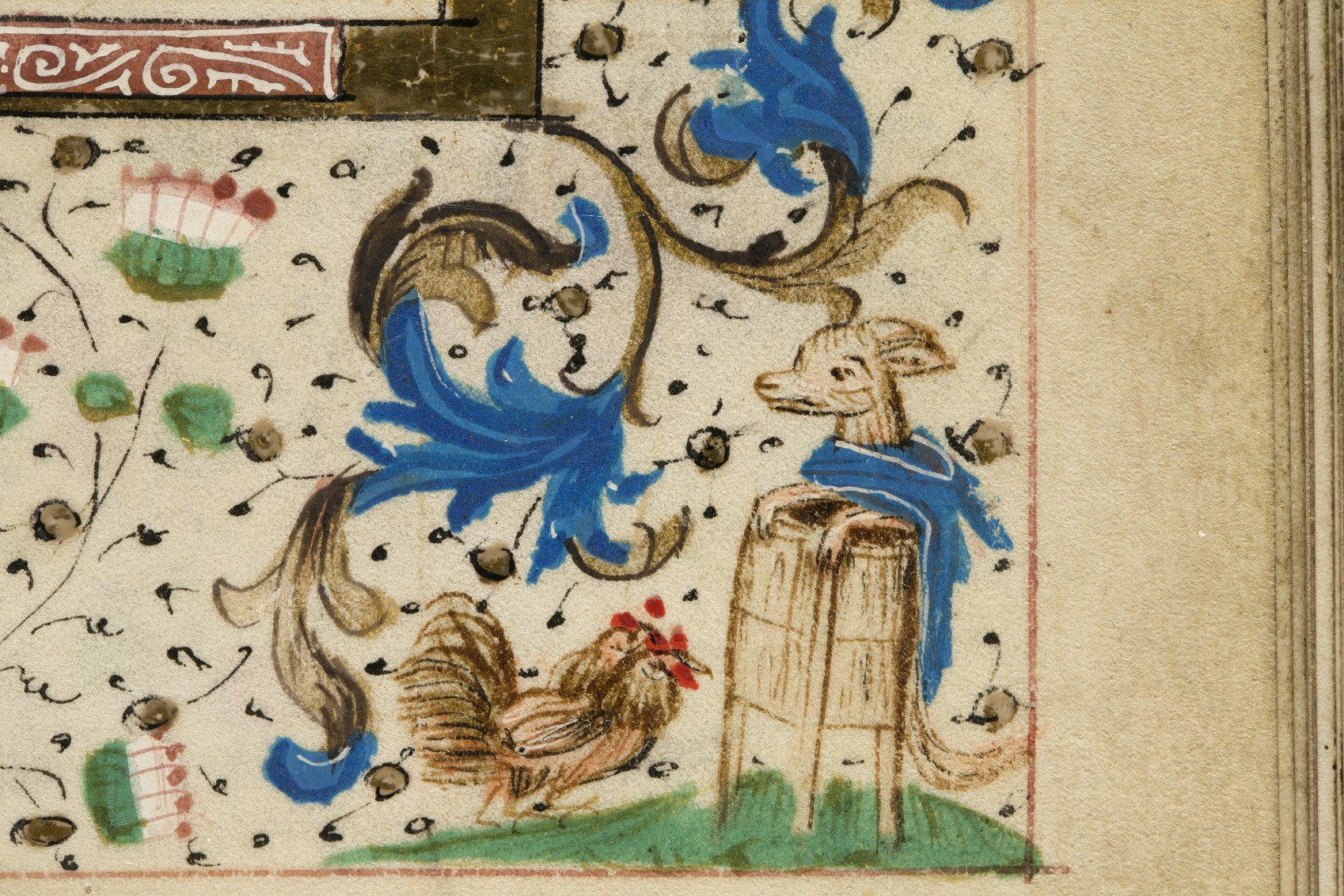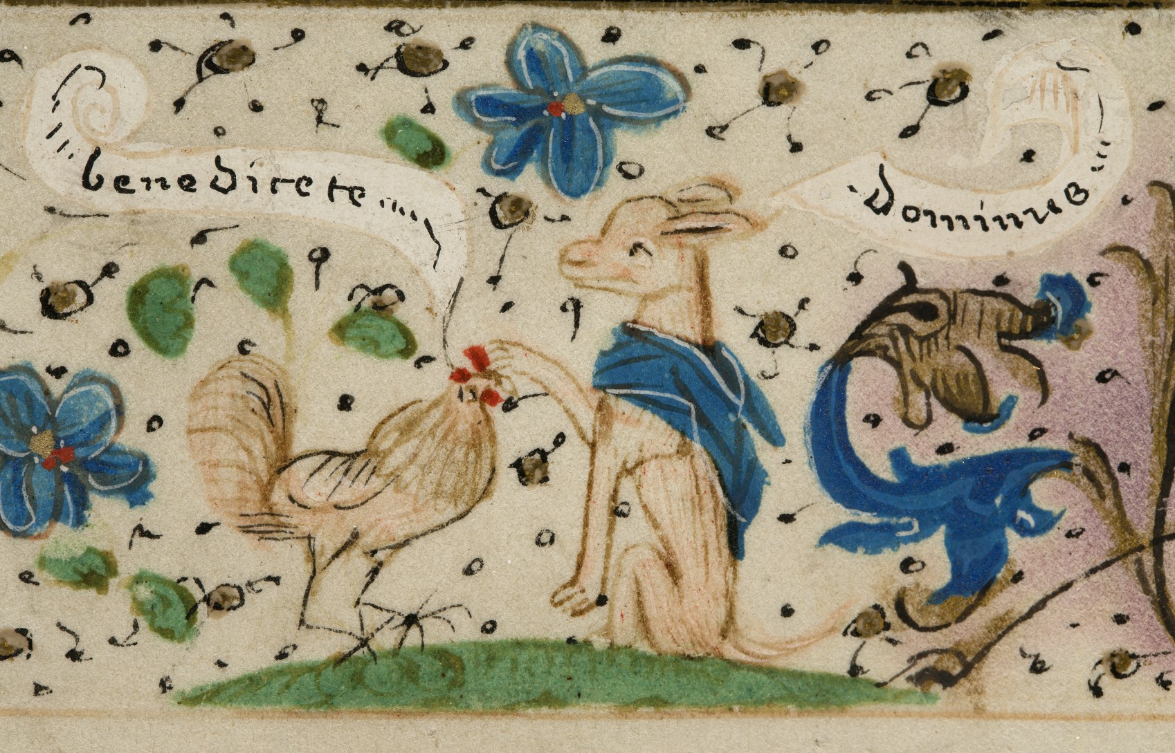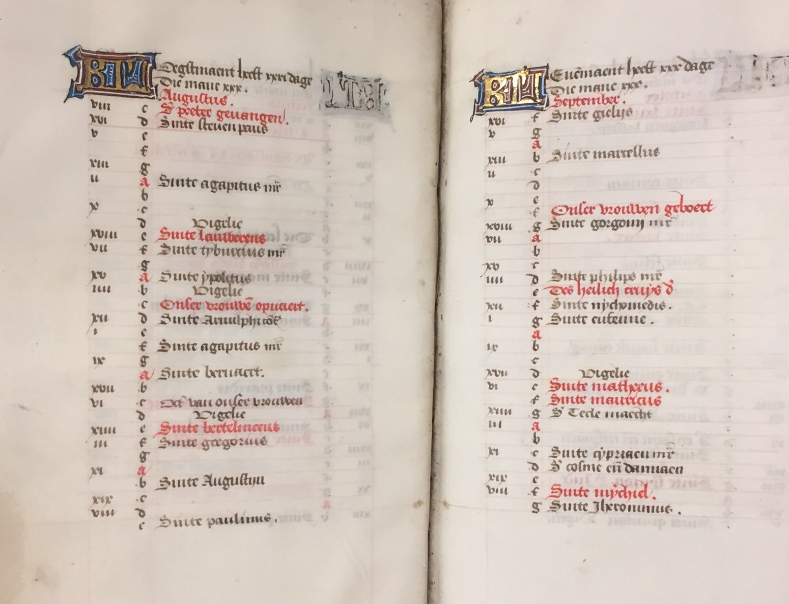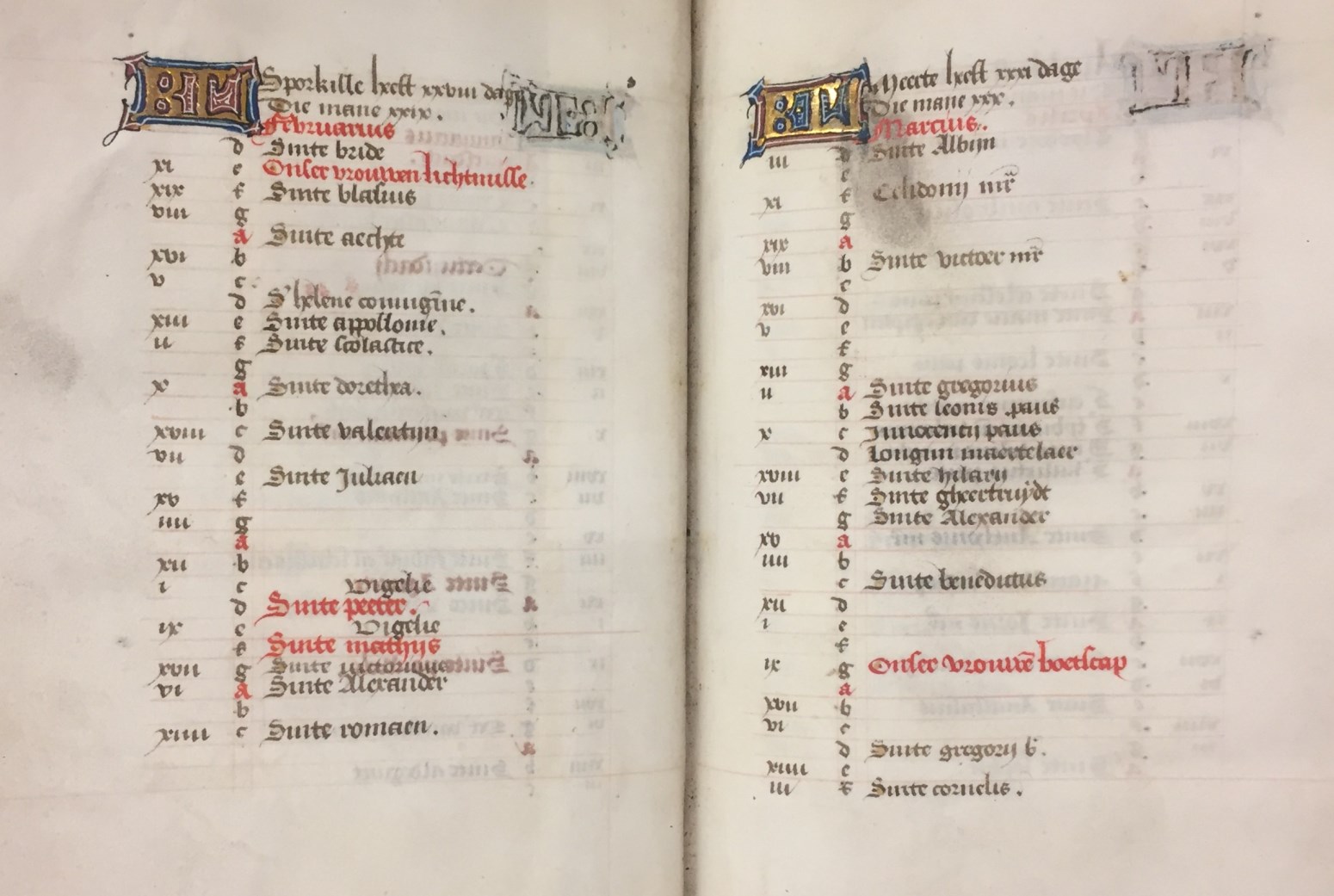In het handschrift zijn twee miniaturen bewaard, een annunciatie naar voorbeeld van Hans Memlinc (f. 8v, behoorlijk beschadigd) en een bijzondere afbeelding van het laatste oordeel bij het begin van de zeven boetpsalmen (f. 37v). Tenminste twee miniaturen zijn uitgesneden, een voor de korte Kruisgetijden (f. 48) en vermoedelijk ook een bij de suffragie voor ...