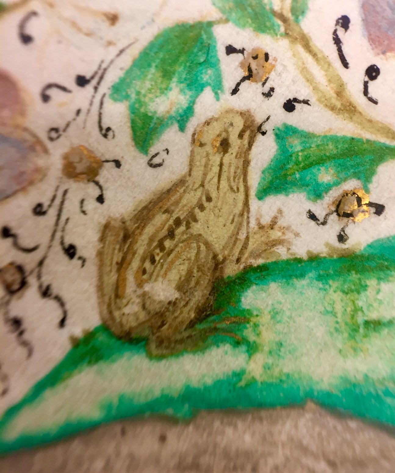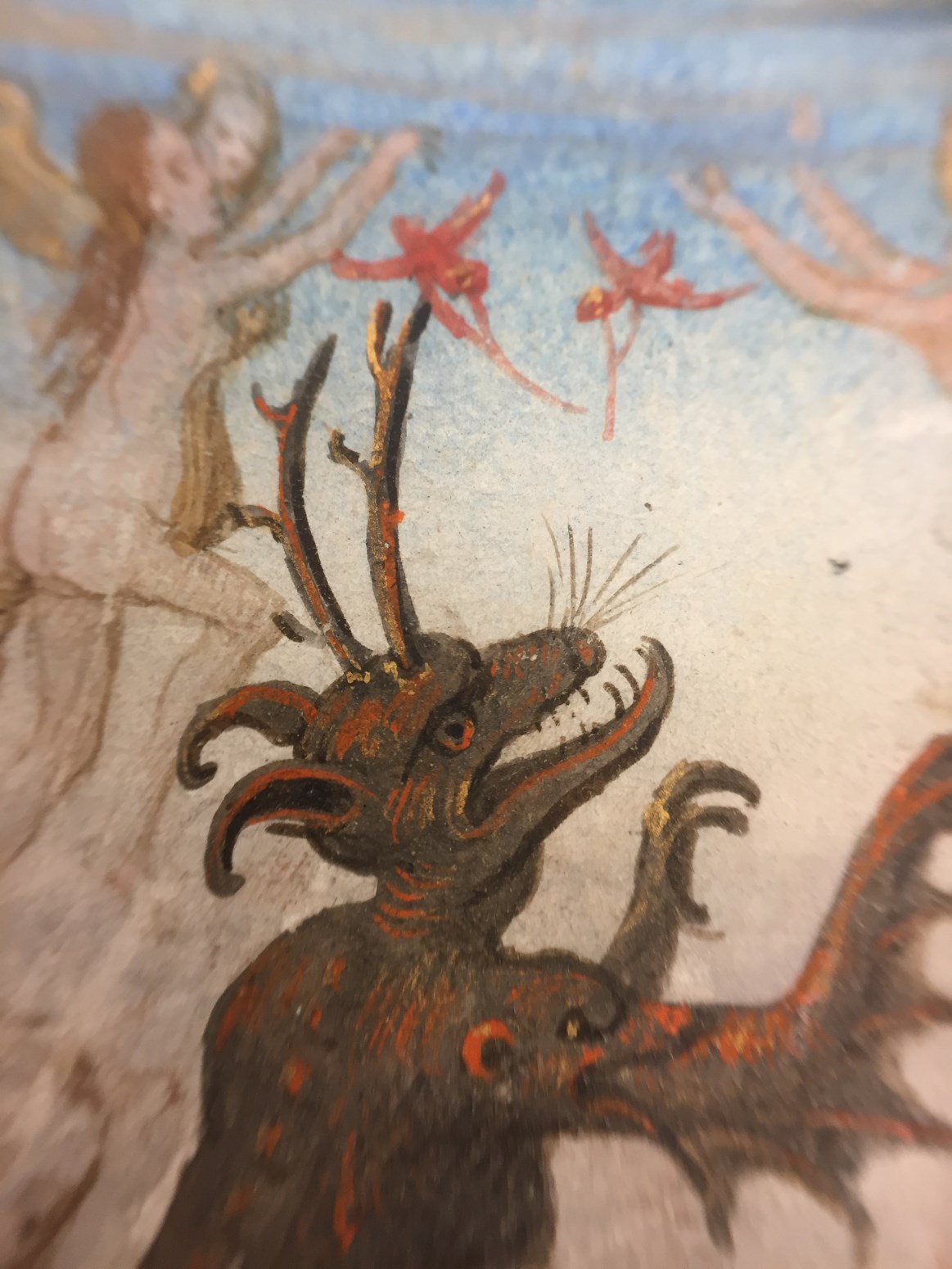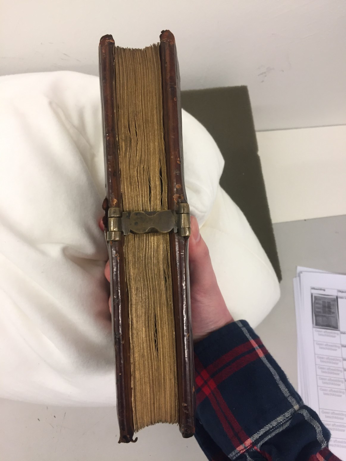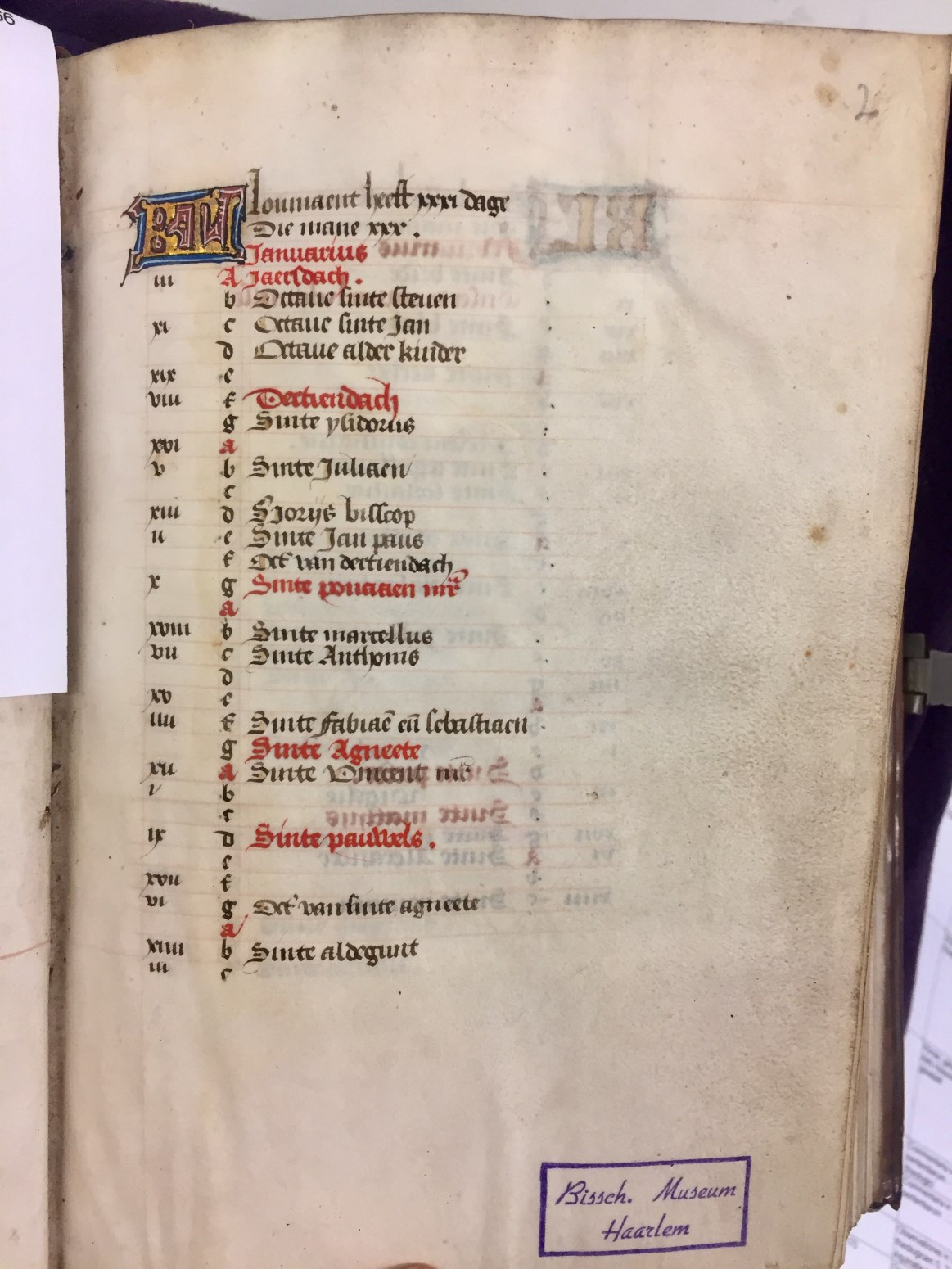 In het handschrift zijn twee miniaturen bewaard, een annunciatie naar voorbeeld van Hans Memlinc (f. 8v, behoorlijk beschadigd) en een bijzondere afbeelding van het laatste oordeel bij het begin van de zeven boetpsalmen (f. 37v). Tenminste twee miniaturen zijn uitgesneden, een voor de korte Kruisgetijden (f. 48) en vermoedelijk ook een bij de suffragie voor ...