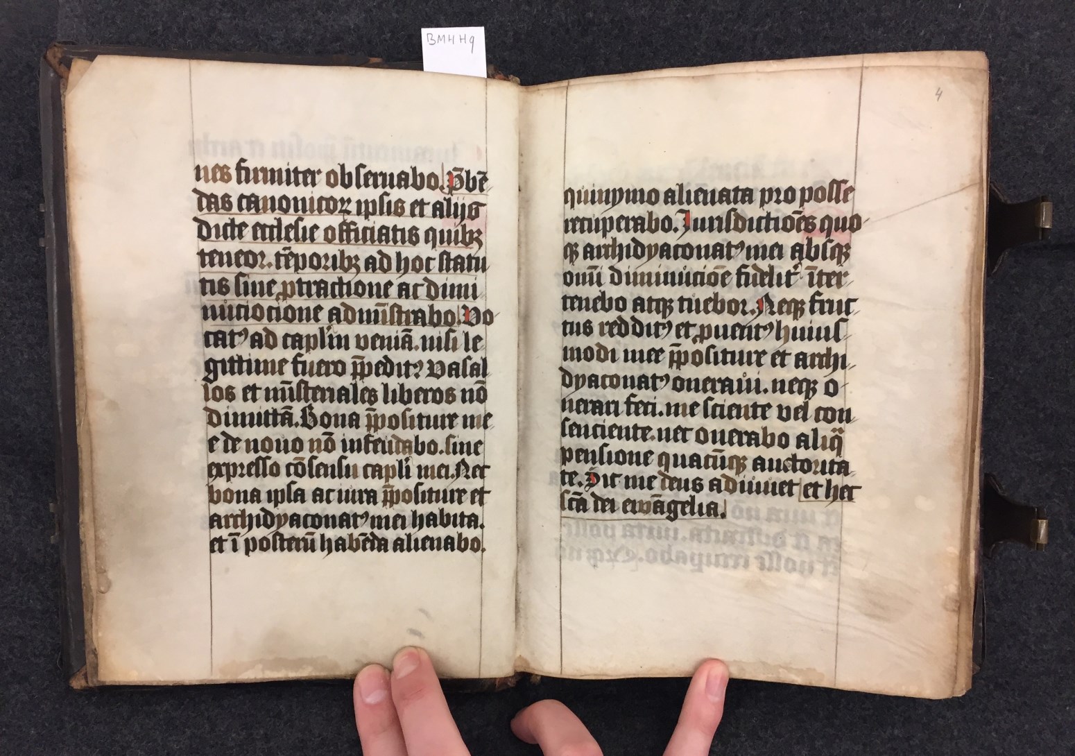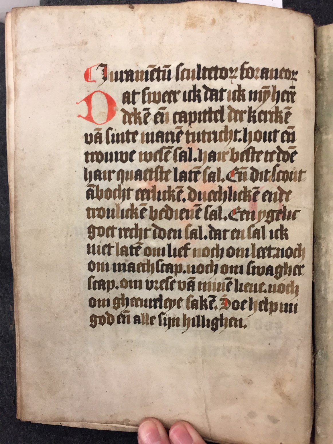 Het handschrift bevat een evangelistarium met de lezingen uit de evangeliën in liturgische volgorde. Voorin het boek zijn enkele bladen met eedformules toegevoegd, waaruit blijkt dat het handschrift behoorde tot het kapittel van St. Marie in Utrecht. Hoe en wanneer het hier terecht is gekomen, is niet bekend. De tekst is geschreven in een regelmatige ...