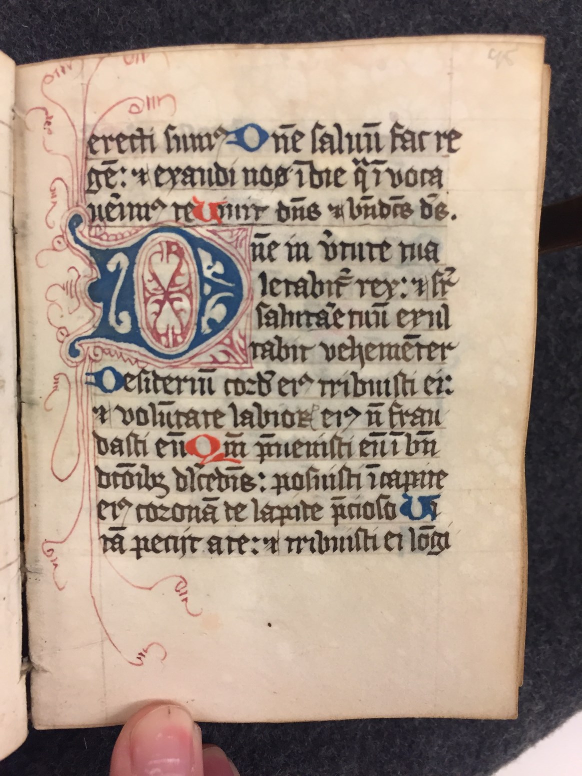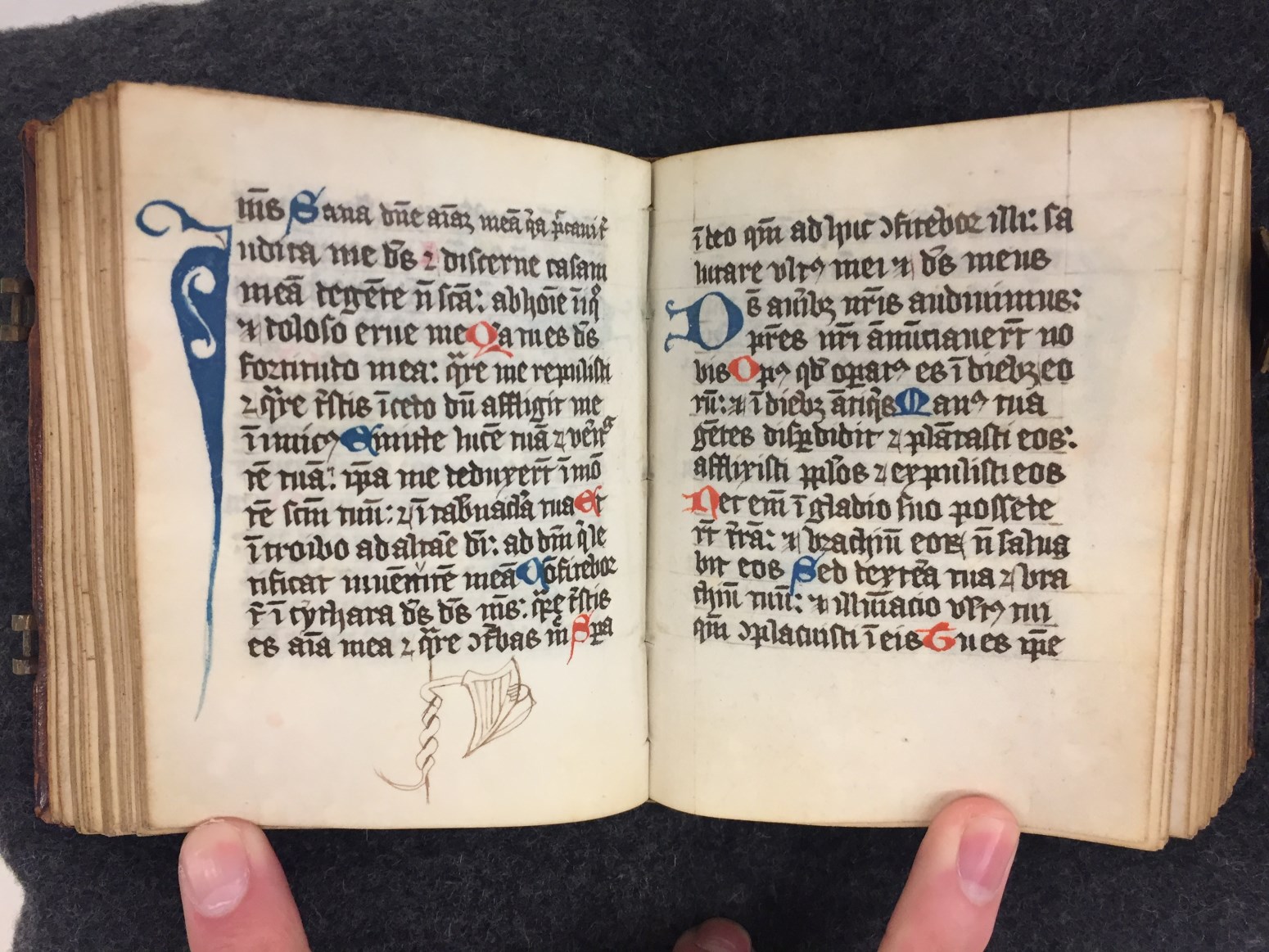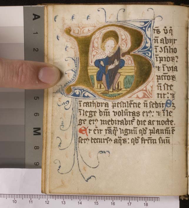 Een psalter uit de Duitse Landen gemaakt voor de orde der Cisterciensis. Gumbert dateerde het handschrift in de 15de eeuw. Naast enkele eenvoudige penwerkinitialen, bevat het handschrift één fraaie gehistoriseerde initiaal B (een jonge koning David speelt op zijn harp, f. 18v) en telt in totaal 276 folia. De schutbladen zijn gemaakt van een brevier ...