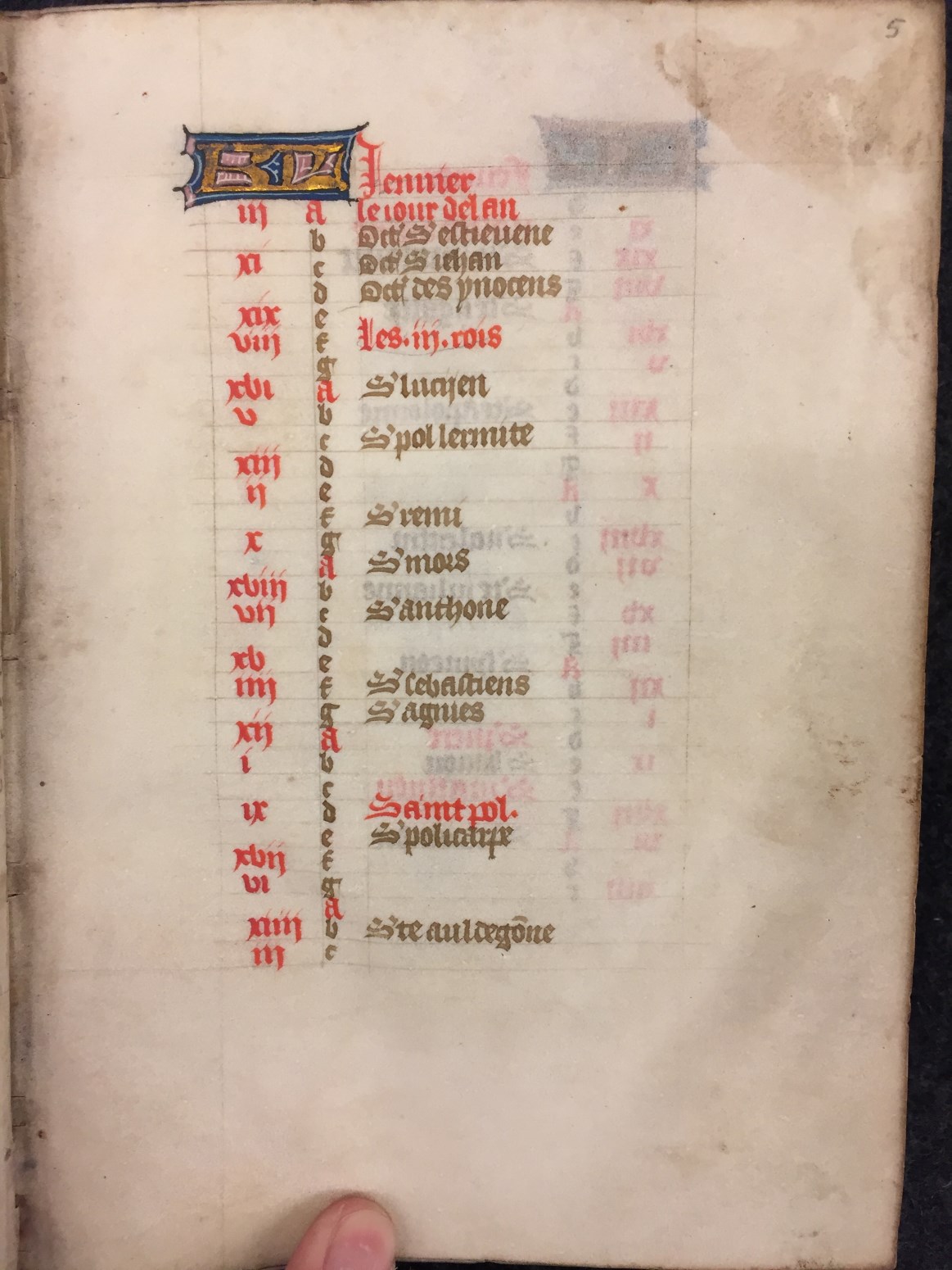 Een getijdenboek uit het noorden van Frankrijk uit het tweede kwart van de 15de eeuw. Het handschrift (op perkament) telt 97 folia (aantekeningen in het Nederlands [17de eeuw] niet meegeteld), bevat geschilderde initialen en 13 miniaturen (f. 11v, 15v, 19v, 28v, 36v, 40v, 43v, 46v, 49v, 55v, 59v, 72v en 93v).