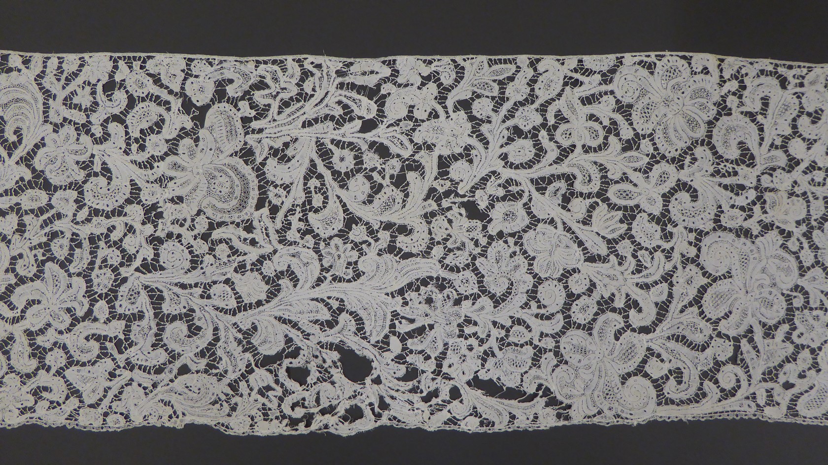 Strook Vlaamse kloskant met bloemranken en getande spijlen