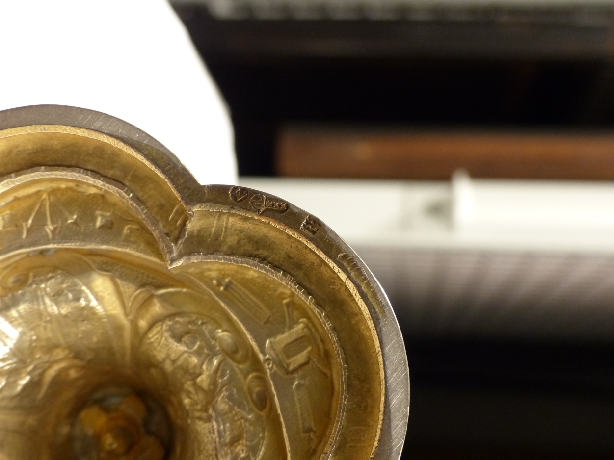 Kelk met zeslobbige voet, cuppa met laatste avondmaal, offer van Abraham, enz.