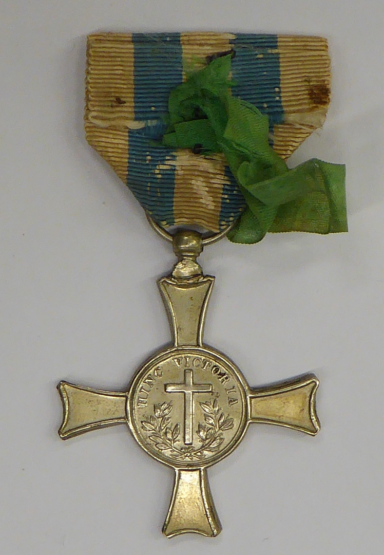 Mentanakruis met "Fidei et Virtuti ... Pius IX 1867", kz. met "Hinc Victoria", blauw-wit lint