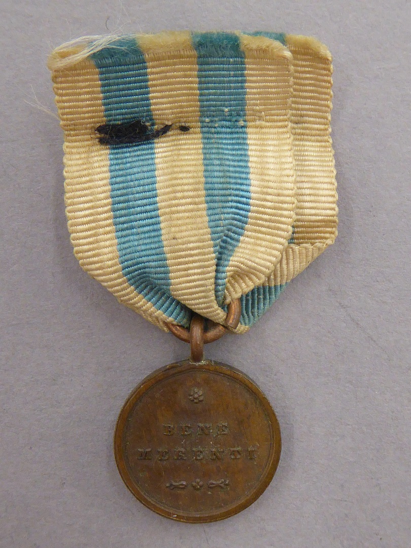Klein model Bene Merenti met portret paus Leo XIII, kz. met "Bene merenti", aan blauw-wit lint