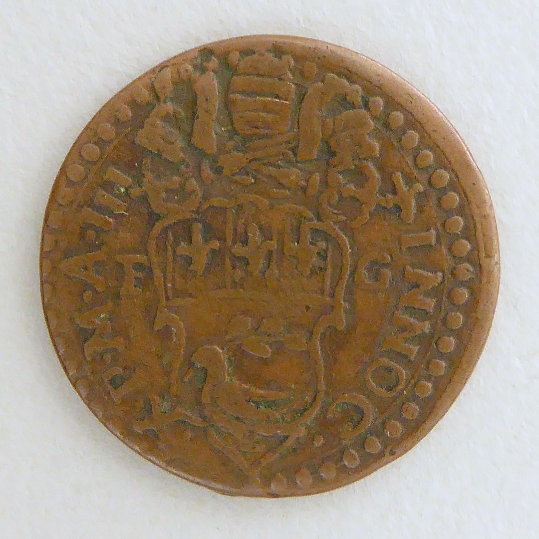 Quattrino paus Innocentius X met wapen, kz. St. Paulus
