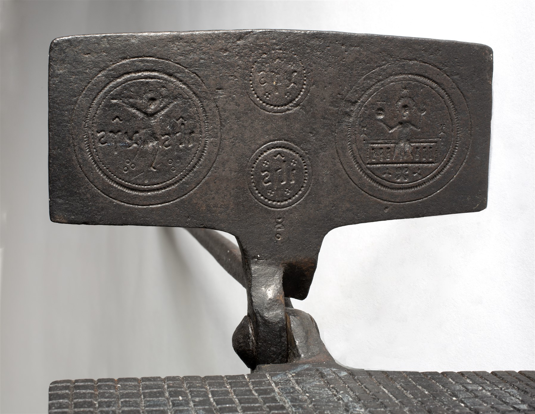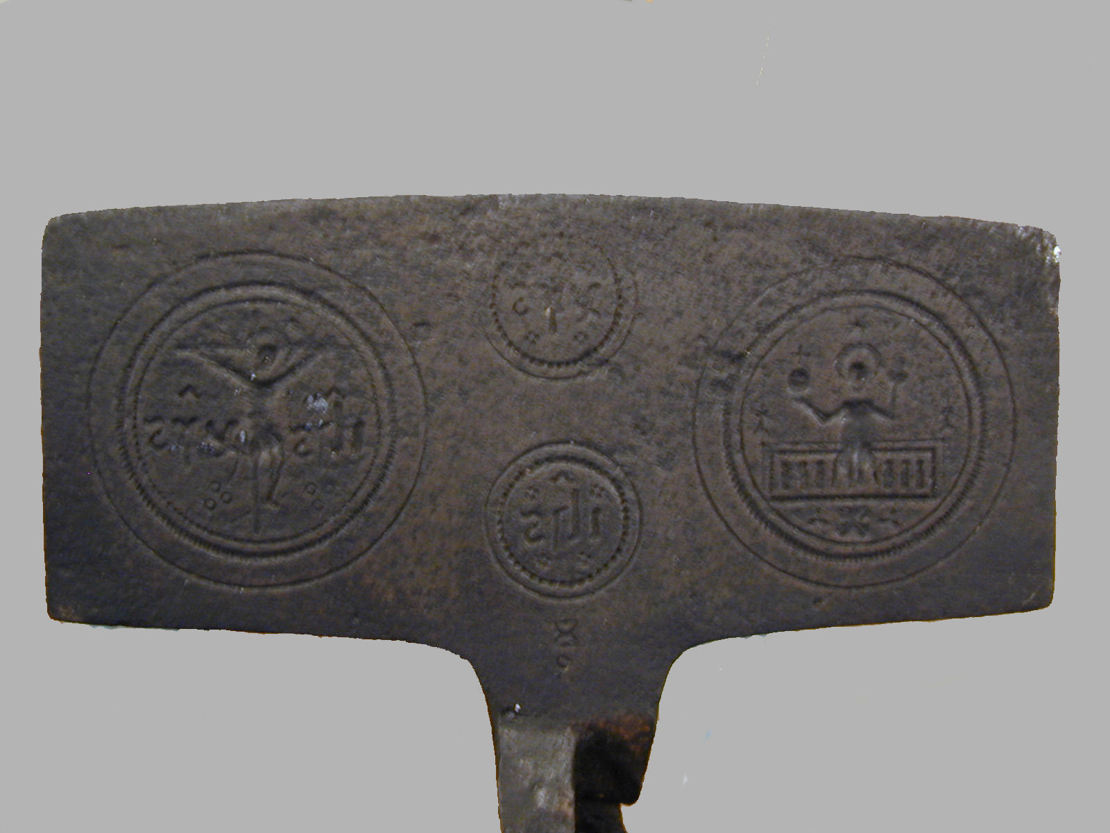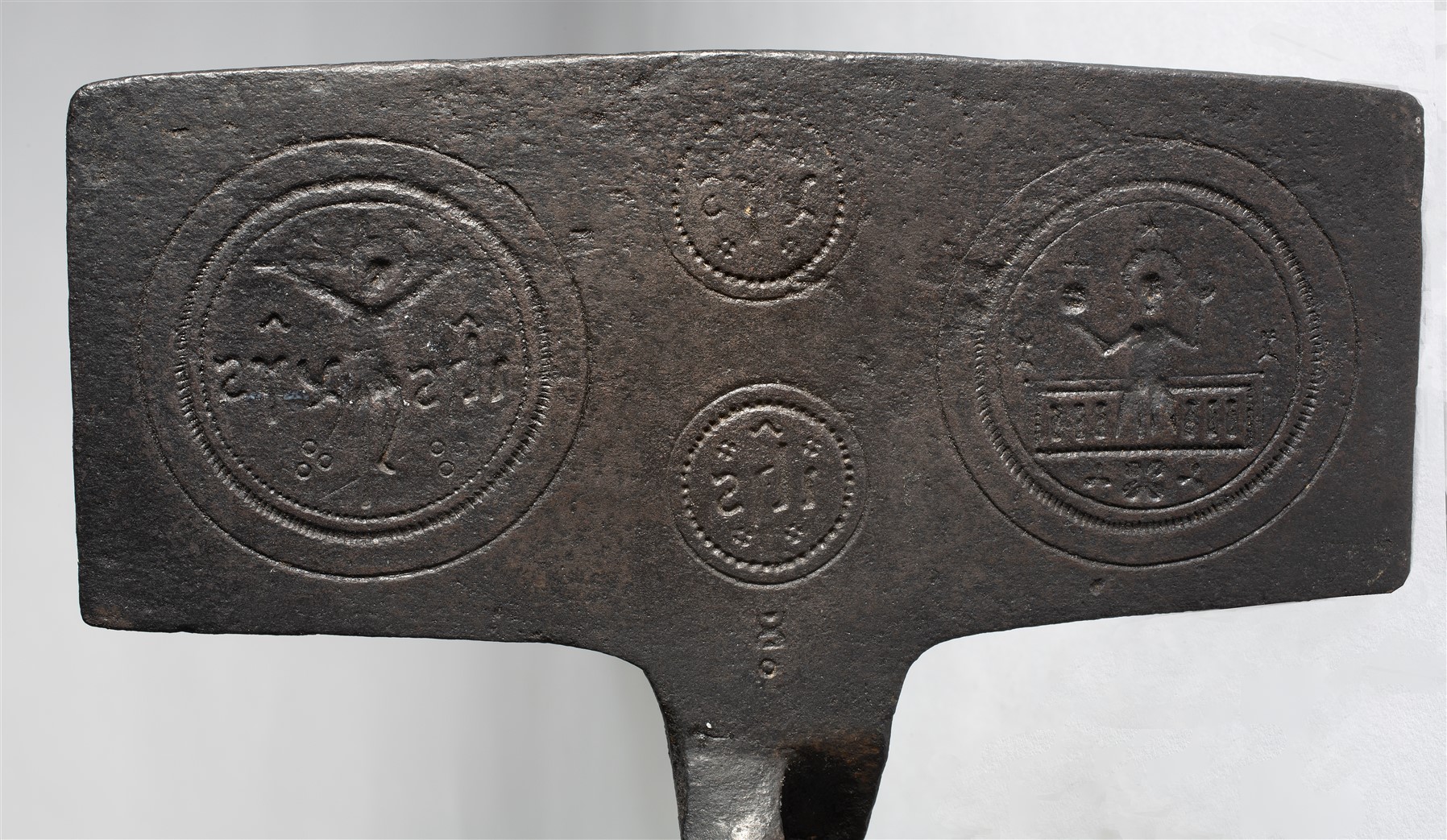 Hostieijzer voor twee grote en twee kleine hosties, de grote met gekruisigde Christus