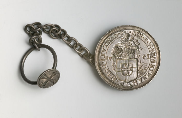 Zegelstempel van het kapittel der commanderij van St. Jan te Haarlem, met ketting waaraan zegelring