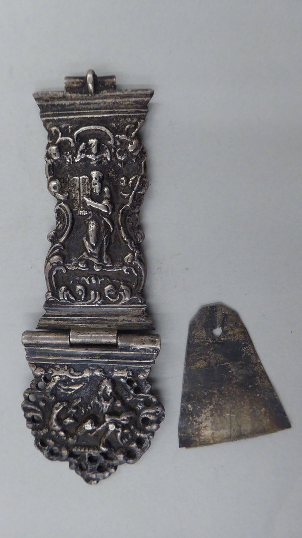 Klamparm met Mozes en aanzetstuk met evangelist Johannes