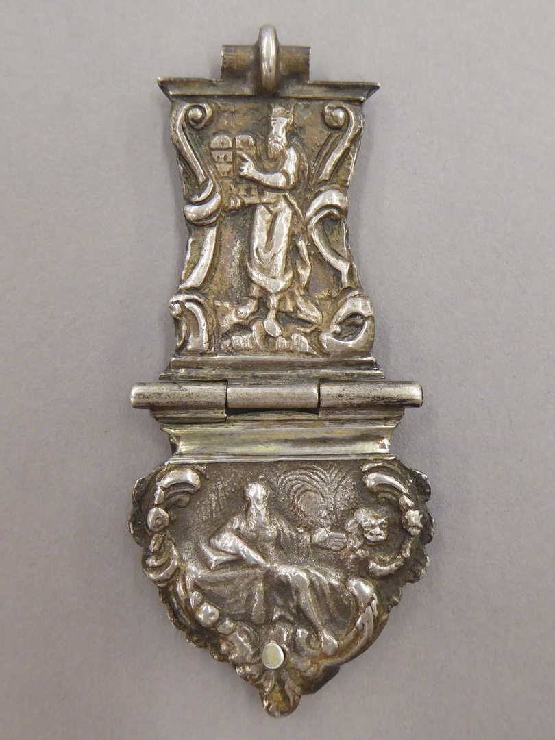 Klamparm met Mozes met de wetstafelen en muiter met evangelist Marcus