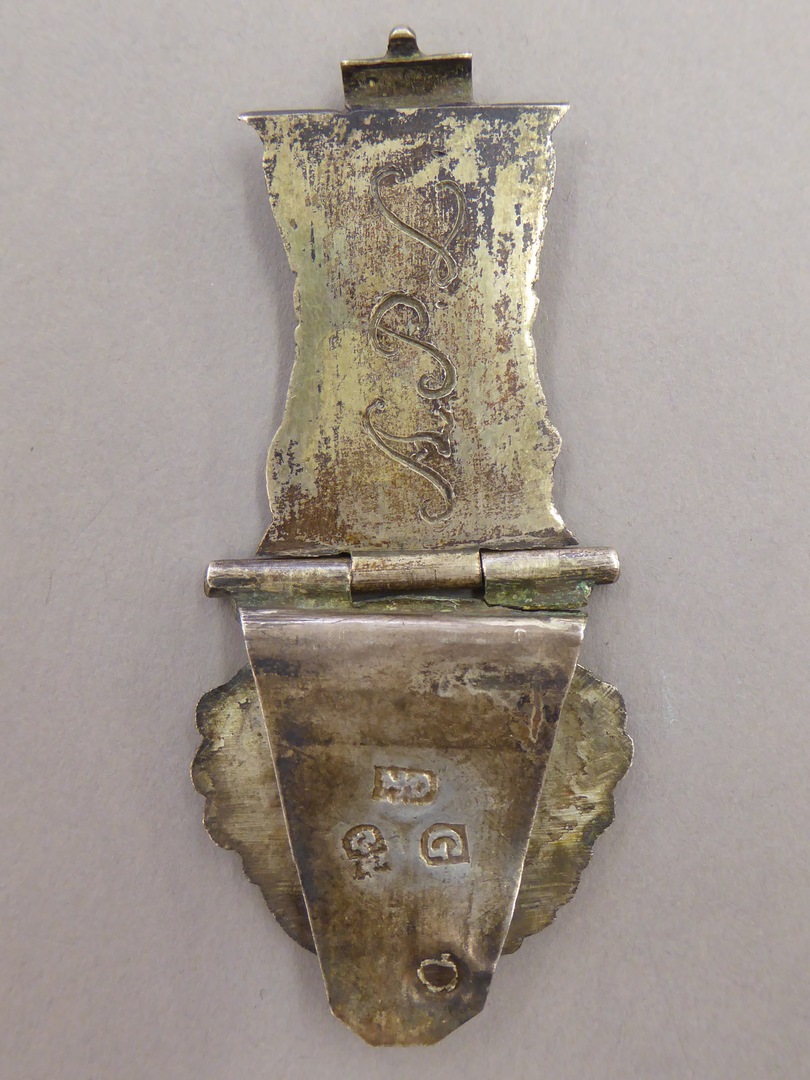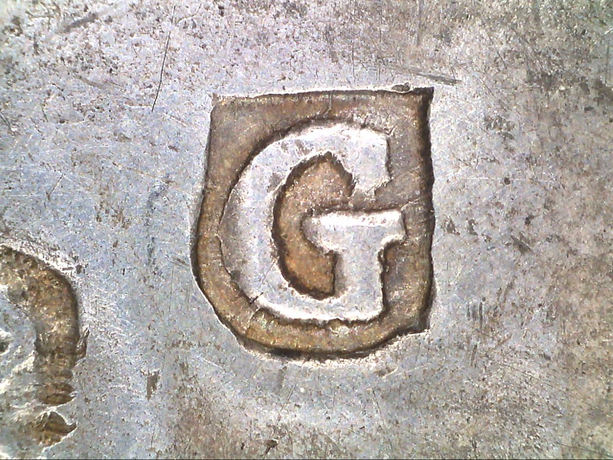 Op de binnenkant van de klamparm staan de initialen 'A.P.L.' gegraveerd