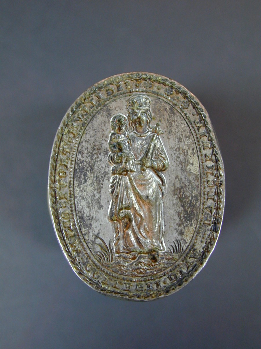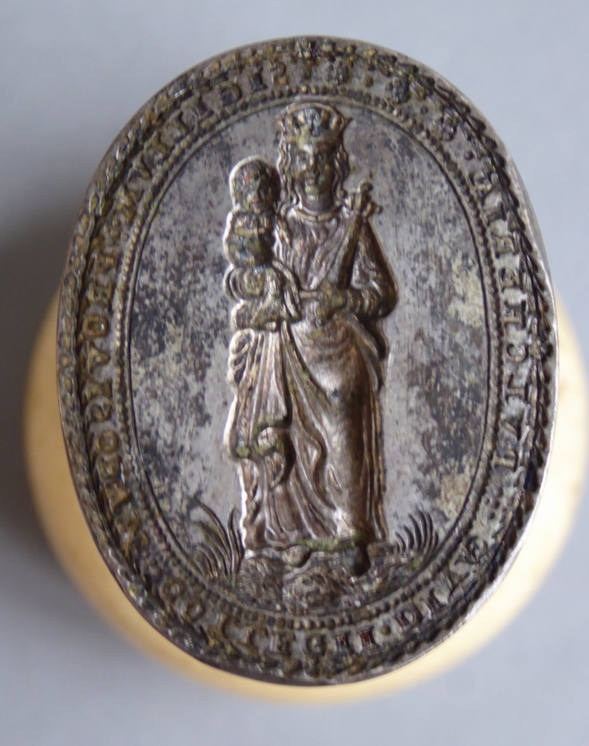 Zegelstempel met Maria met kind van het Pulcheria-College te Leuven, met randschrift