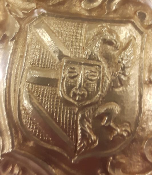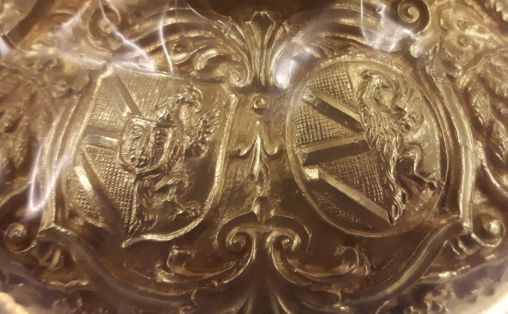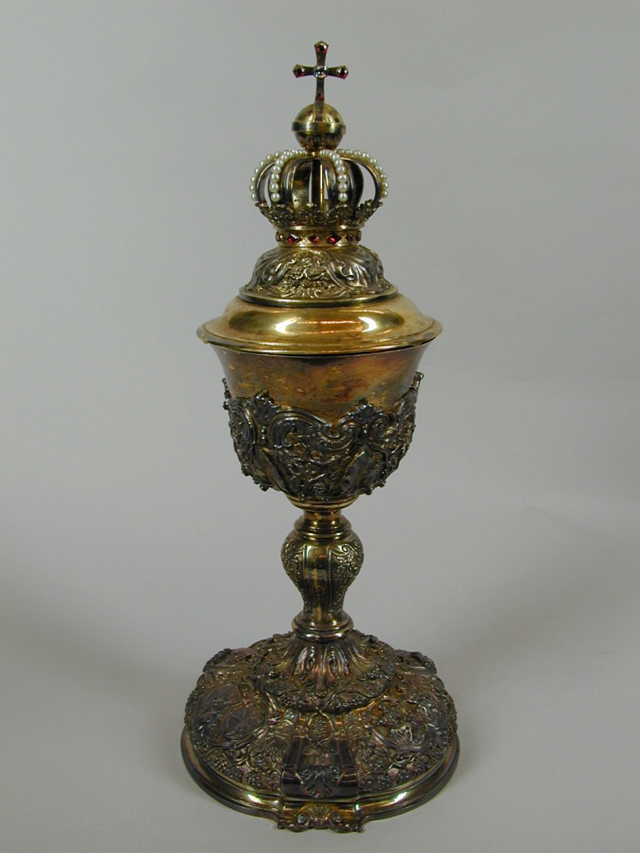 Ciborie, op voet evangelisten en wapens, kroon op deksel