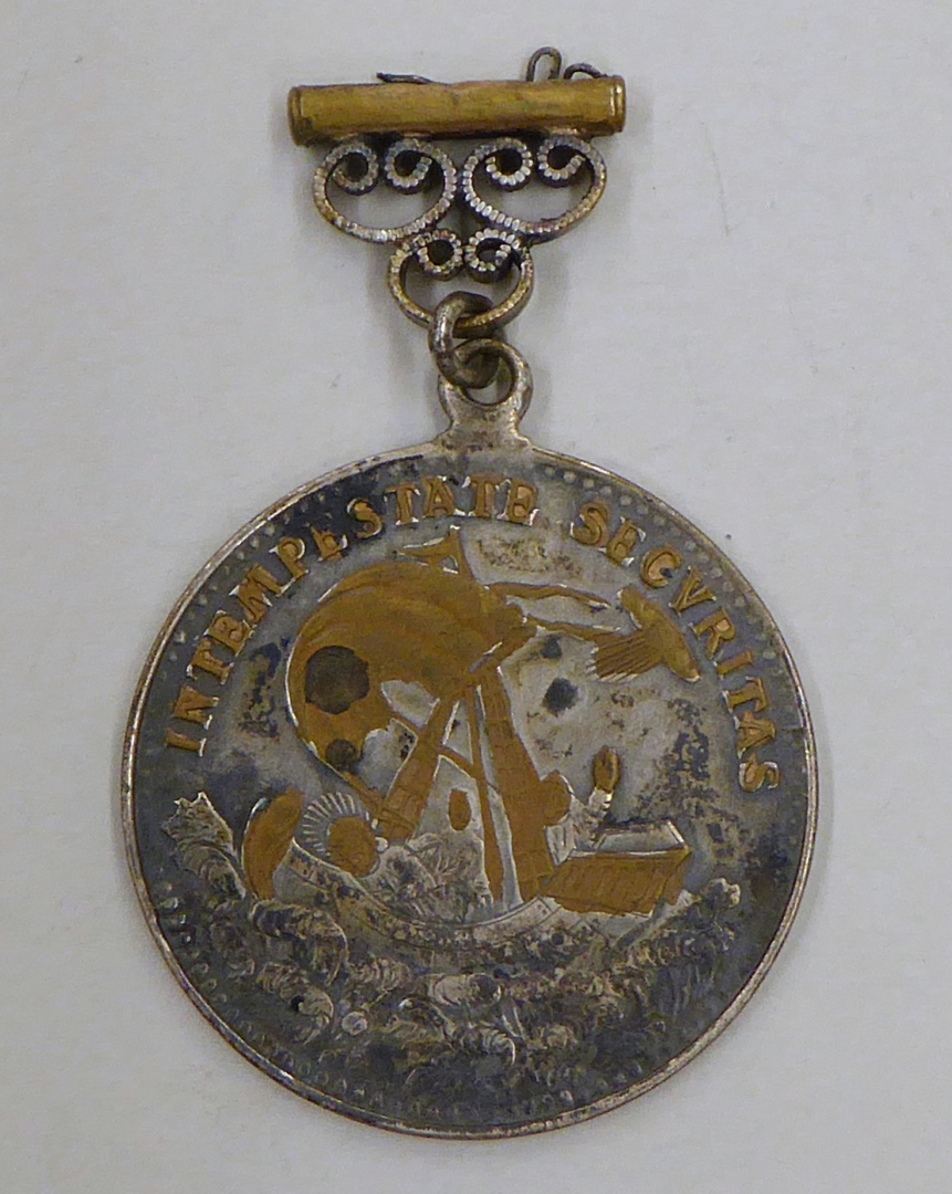 Draagpenning met St. Joris en de draak, met "S. Georgius ...", kz. Christus en apostelen op schip