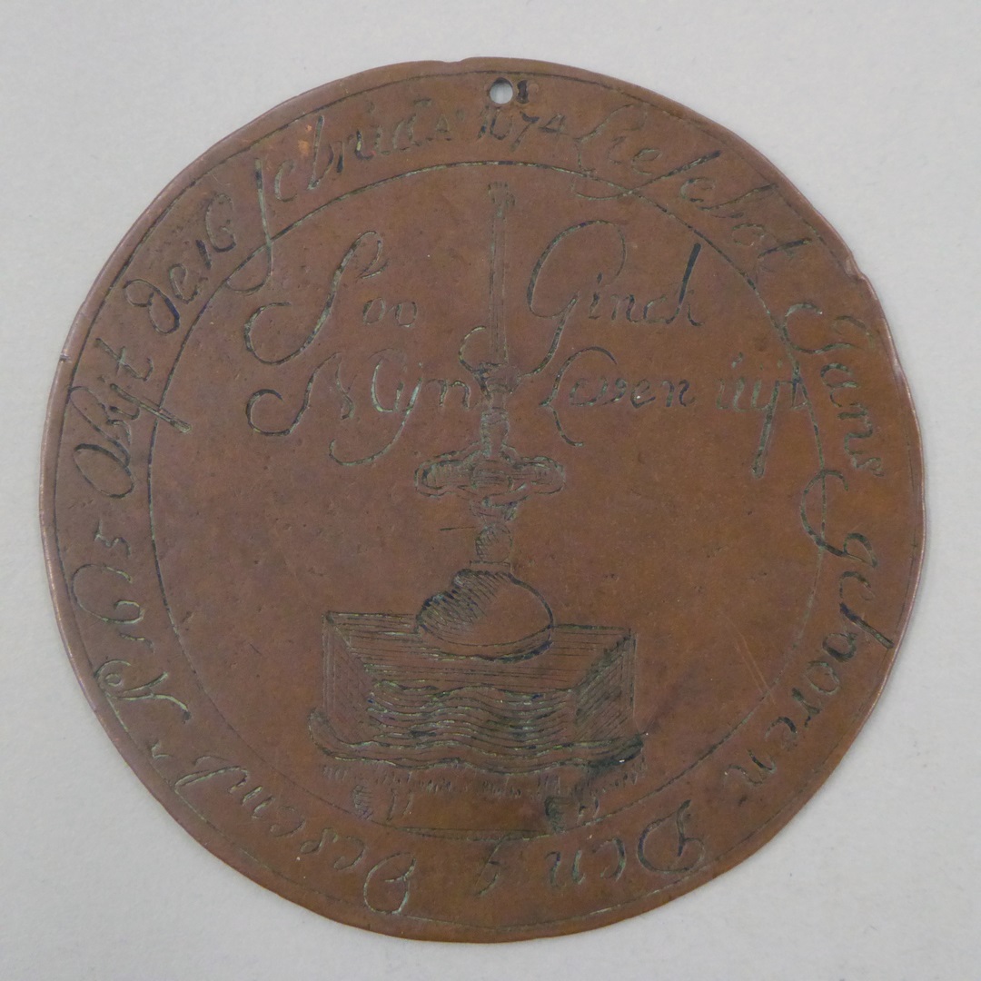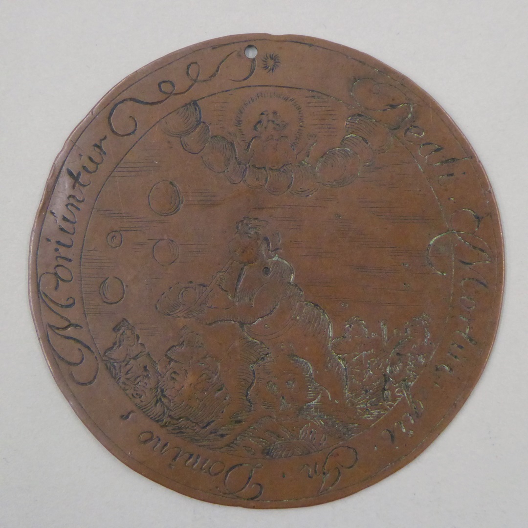 Begrafenispenning Liesebet Jans (1615-1674) met kaars, kz. bellen blazende figuur