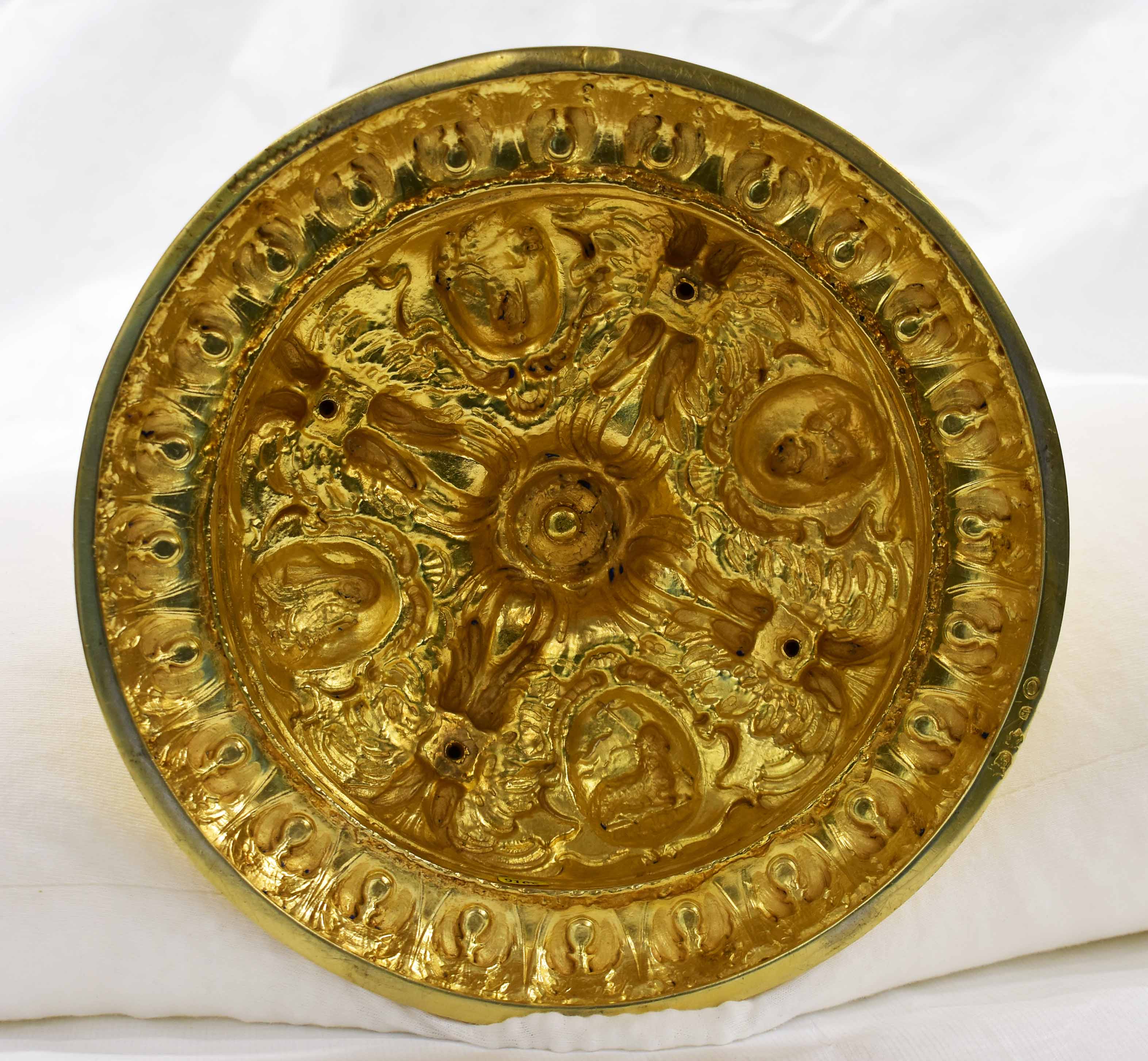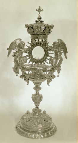 Monstrans, op voet vier medaillons met Lam Gods, HH. Clara, Elisabeth van Thüringen, Franciscus