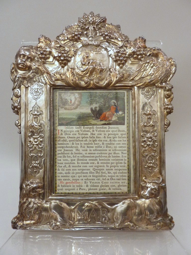 Canonbord met medaillon met evangelist Johannes, met "MAR"