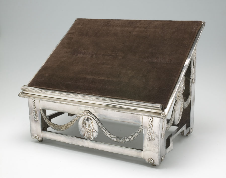 Altaarlezenaar met op de vier zijden ovale medaillons met voor H. Anna, achter IHS met kruis