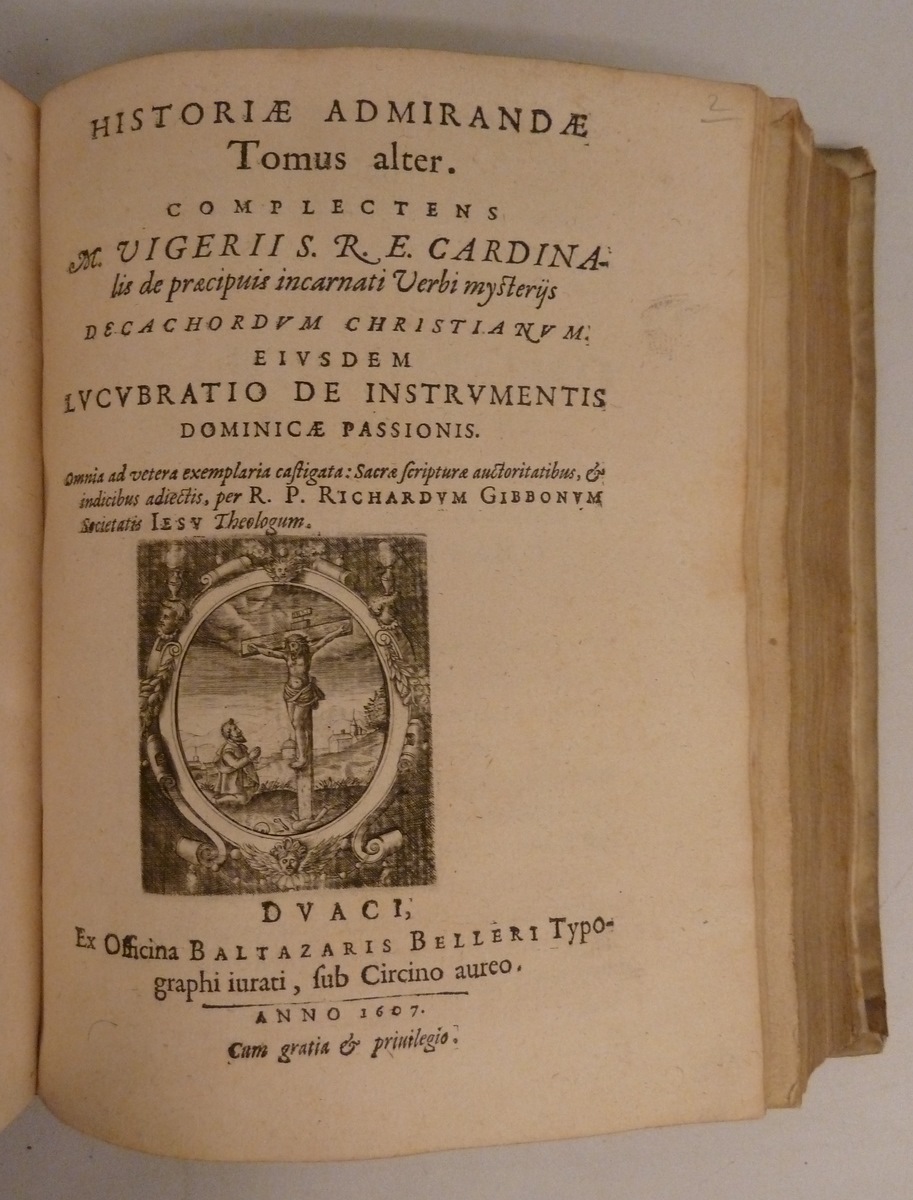 Historiae admirandae tomus alter. Complectens [...] de praecipuis incarnati verbi mysteriis Decachordum christianum. Ejusdem Lucubratio de instrumentis Dominicae Passionis [...] et indicibus adjectis, per [...] Richardum Gibbonum [...]